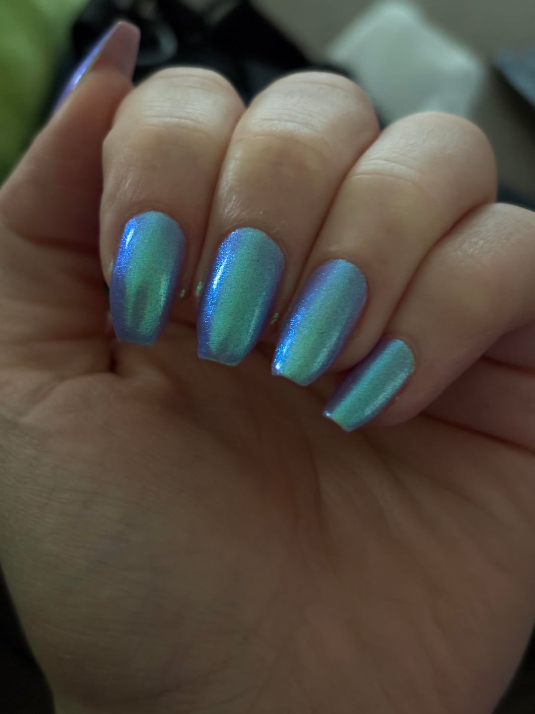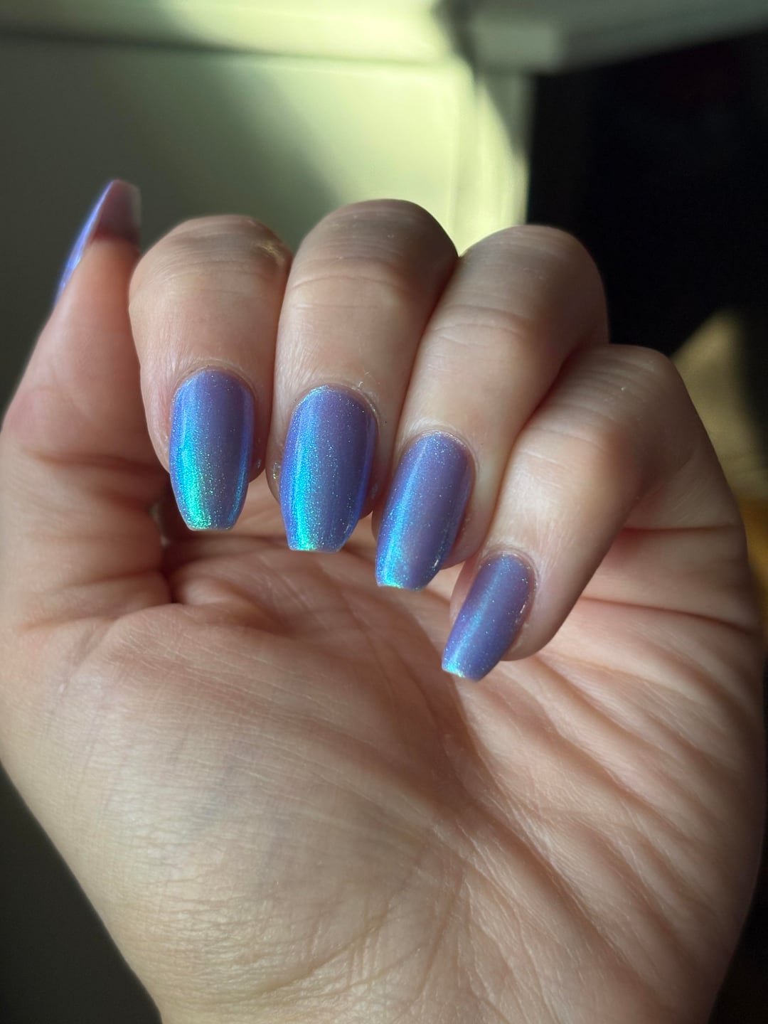 Look at the glow in low light 😍 the shift from green to blue to purple is so pretty. Tibberz!!! By Lurid Lacquer by Far_Celebration_3378