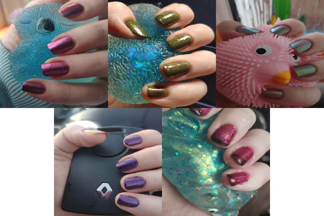 Photo 5 + 6: Phoenix – elijah – outdoor lighting followed by indoors – also the thumb has Mooncat Take Me To Your Leader but I decided it was too orangey gold and didn’t want it on the others but couldn’t be arsed taking it off the thumb.