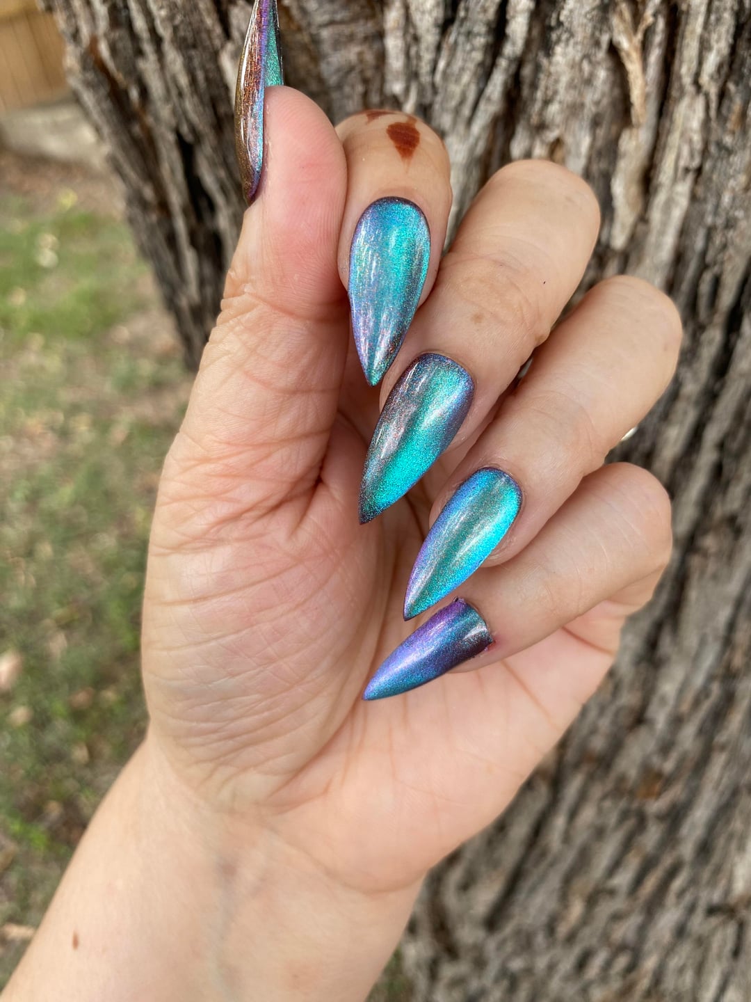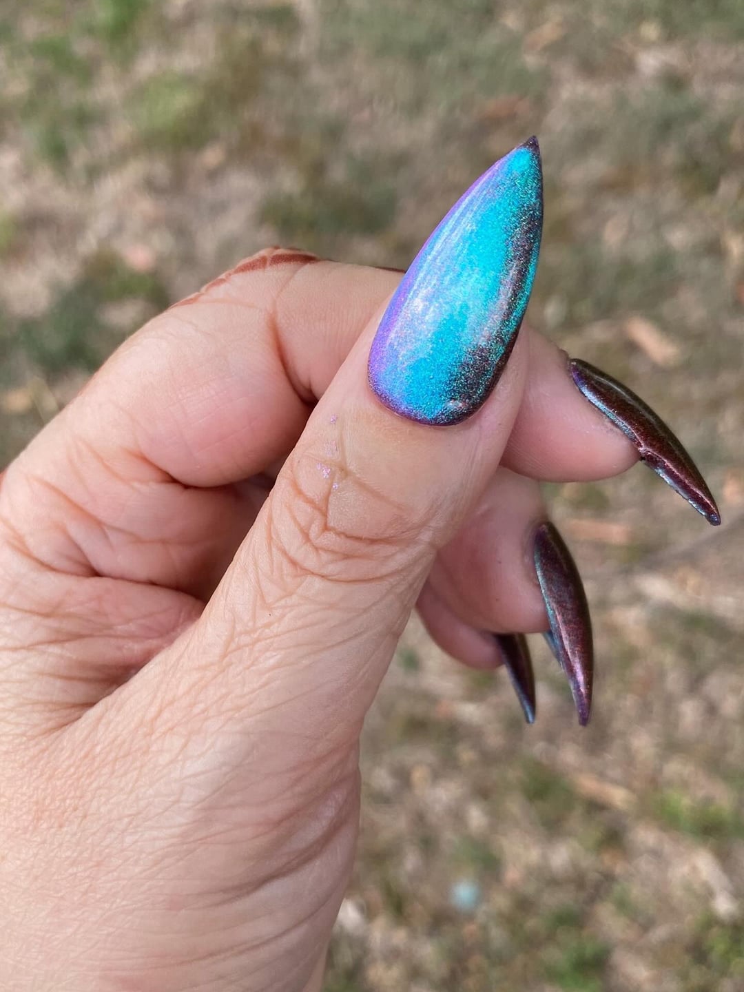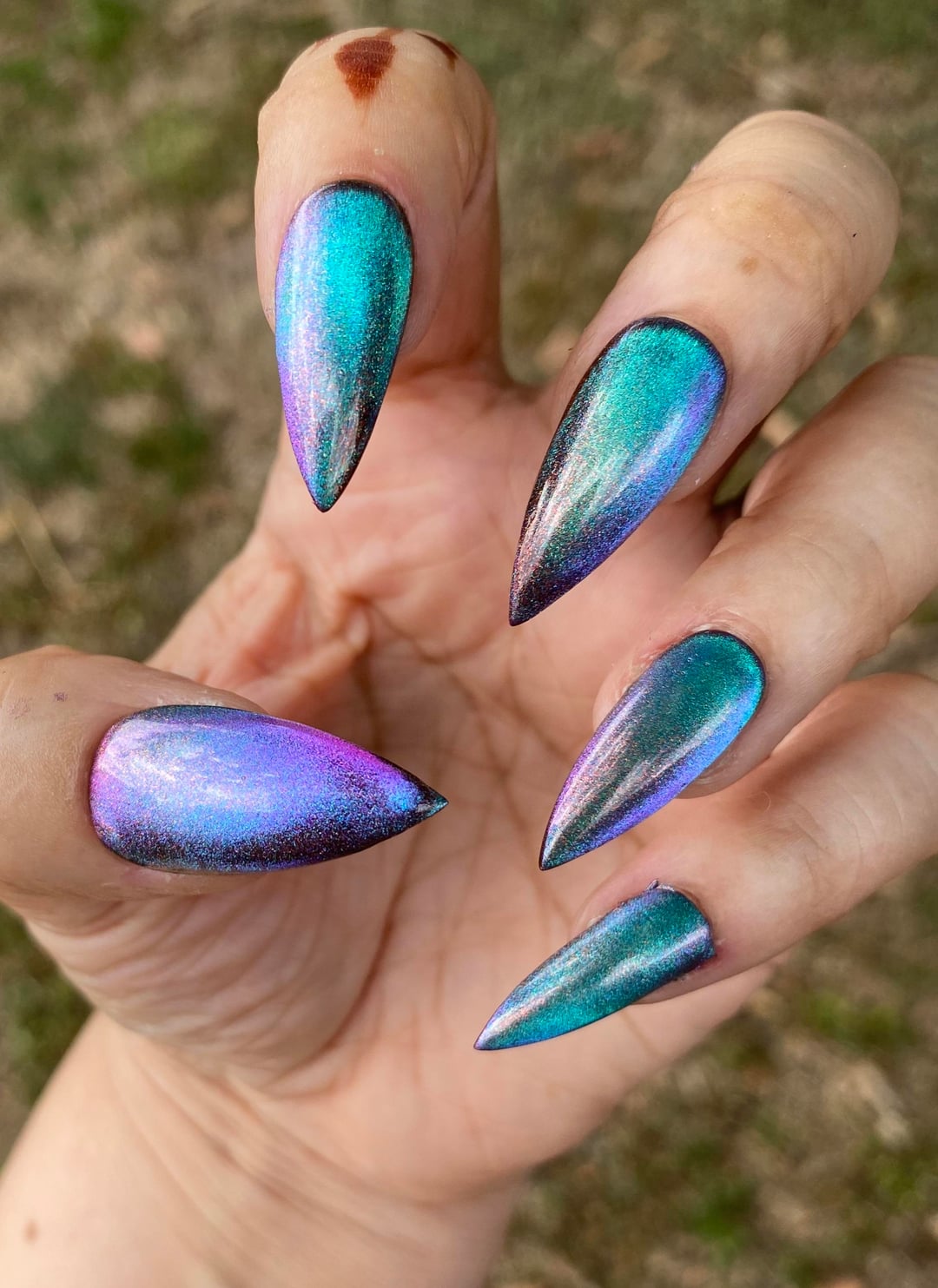 A magnetic multichrome with a velvety dark base that shifts pink → purple → green → copper.