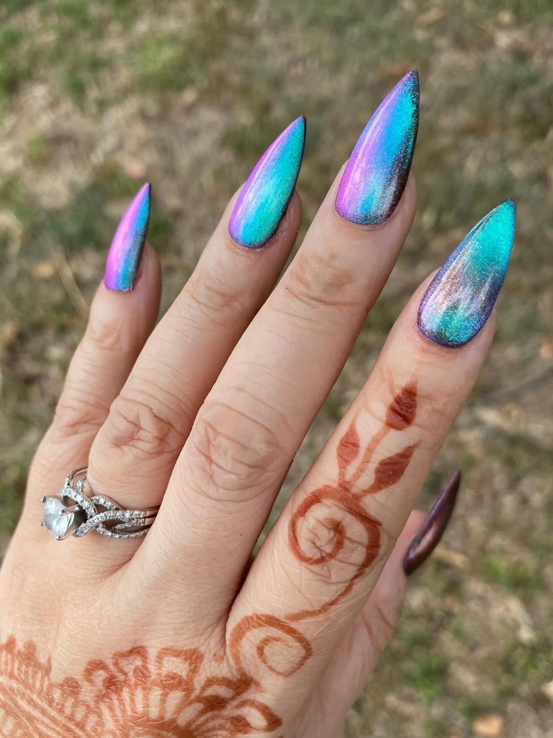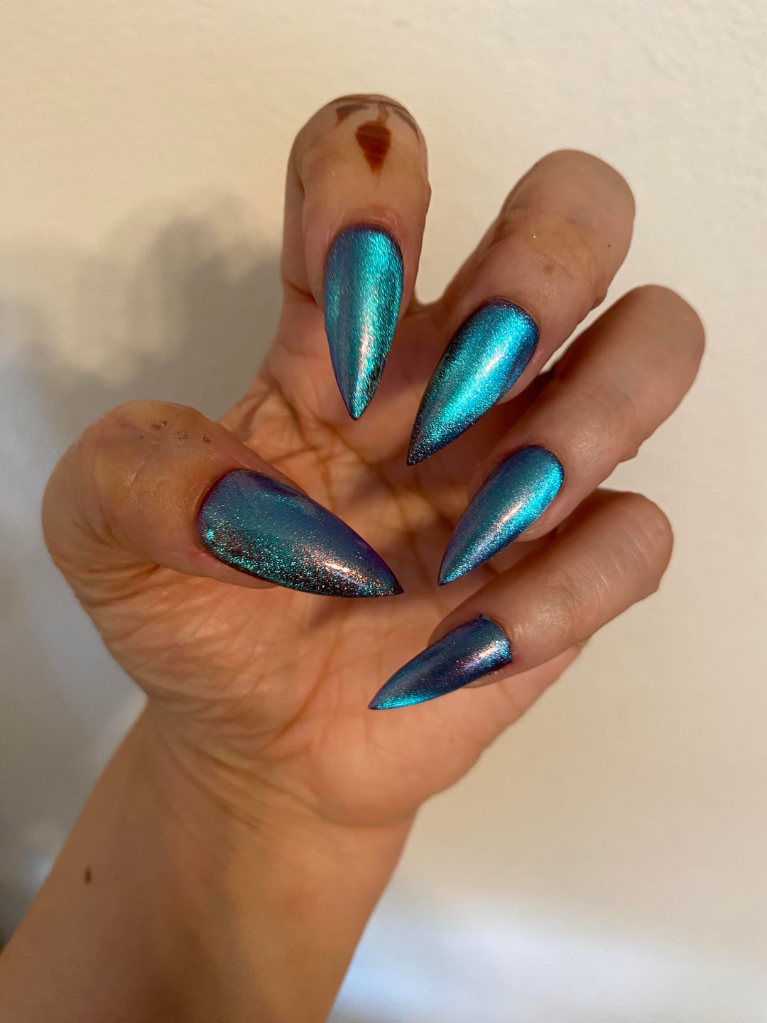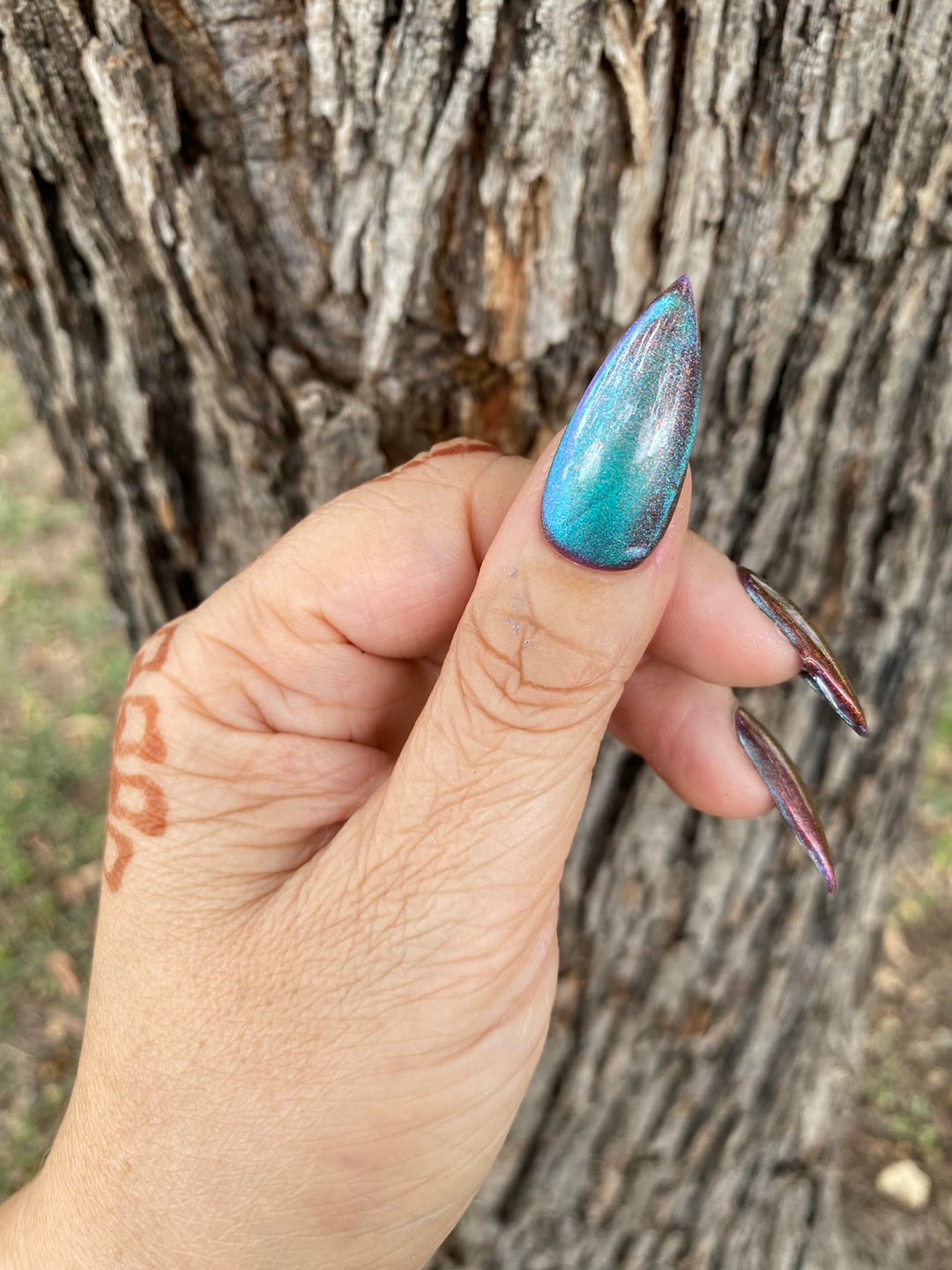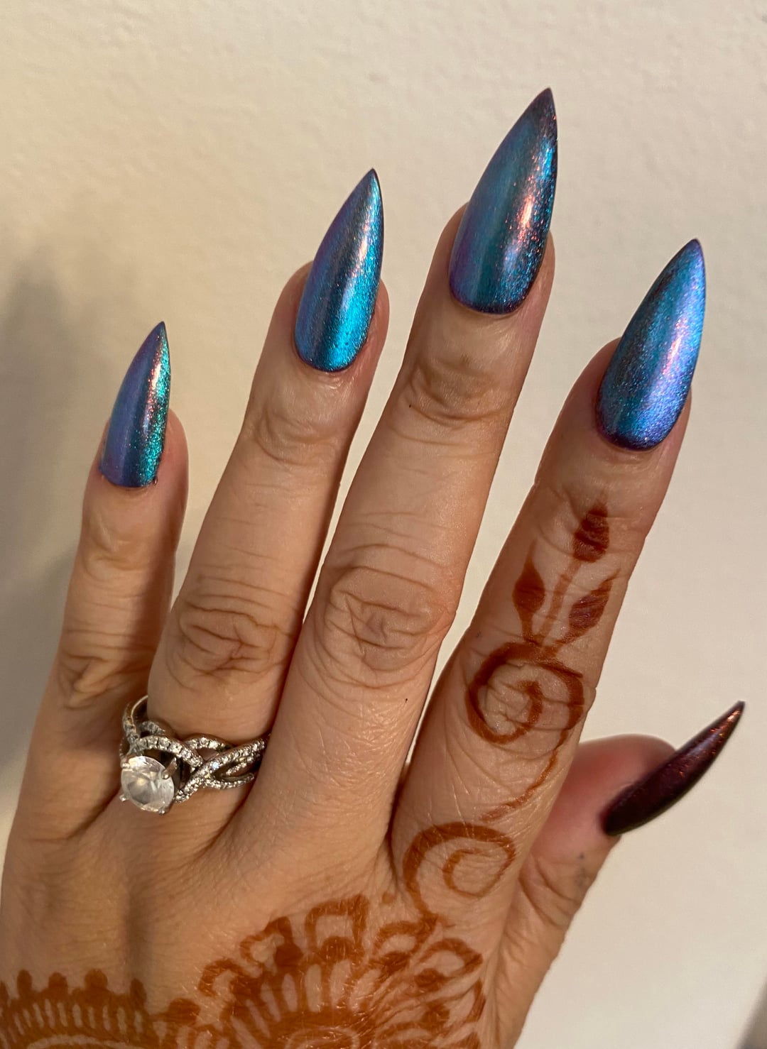 A magnetic multichrome with a velvety dark base that shifts pink → purple → green → copper.