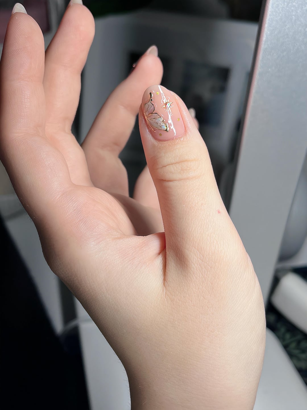 1. Full list: Gellen ‘Time to Shine Nail Polish Base Coat’ Cracked ‘Spill the Tea’ OPI ‘Infinite Shine Top Coat’. Stickers were purchased off of Aliexpress and gold details were done using regular acrylic paint lol.
