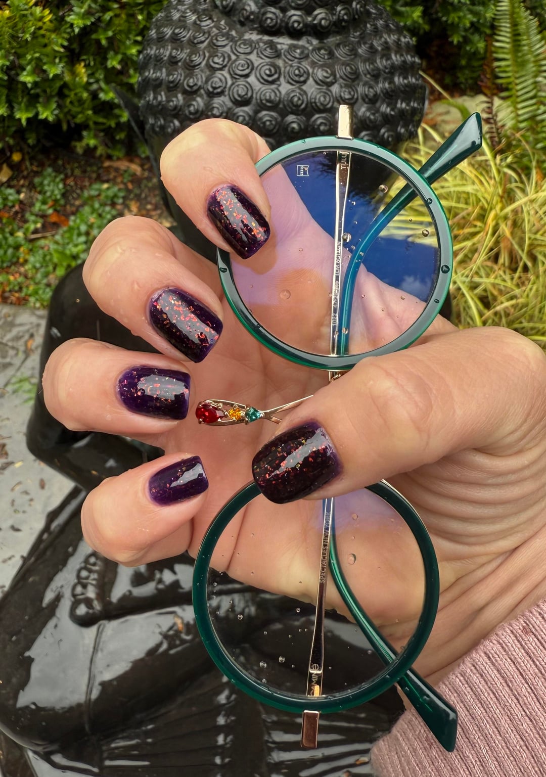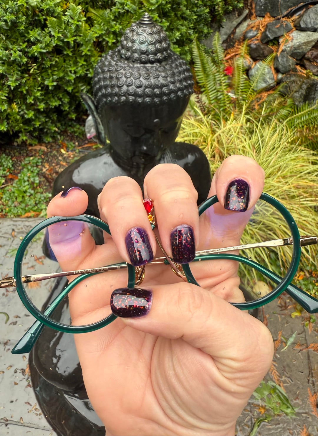 This is Jinx from ILNP and I just love it. The purple jelly is amazing and the color shift flakes make it look green in certain lights!