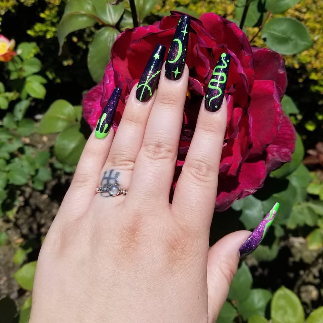 Learning to do my own nails. Here is my first acrylic overlay on my natural nail with a gel polish :)