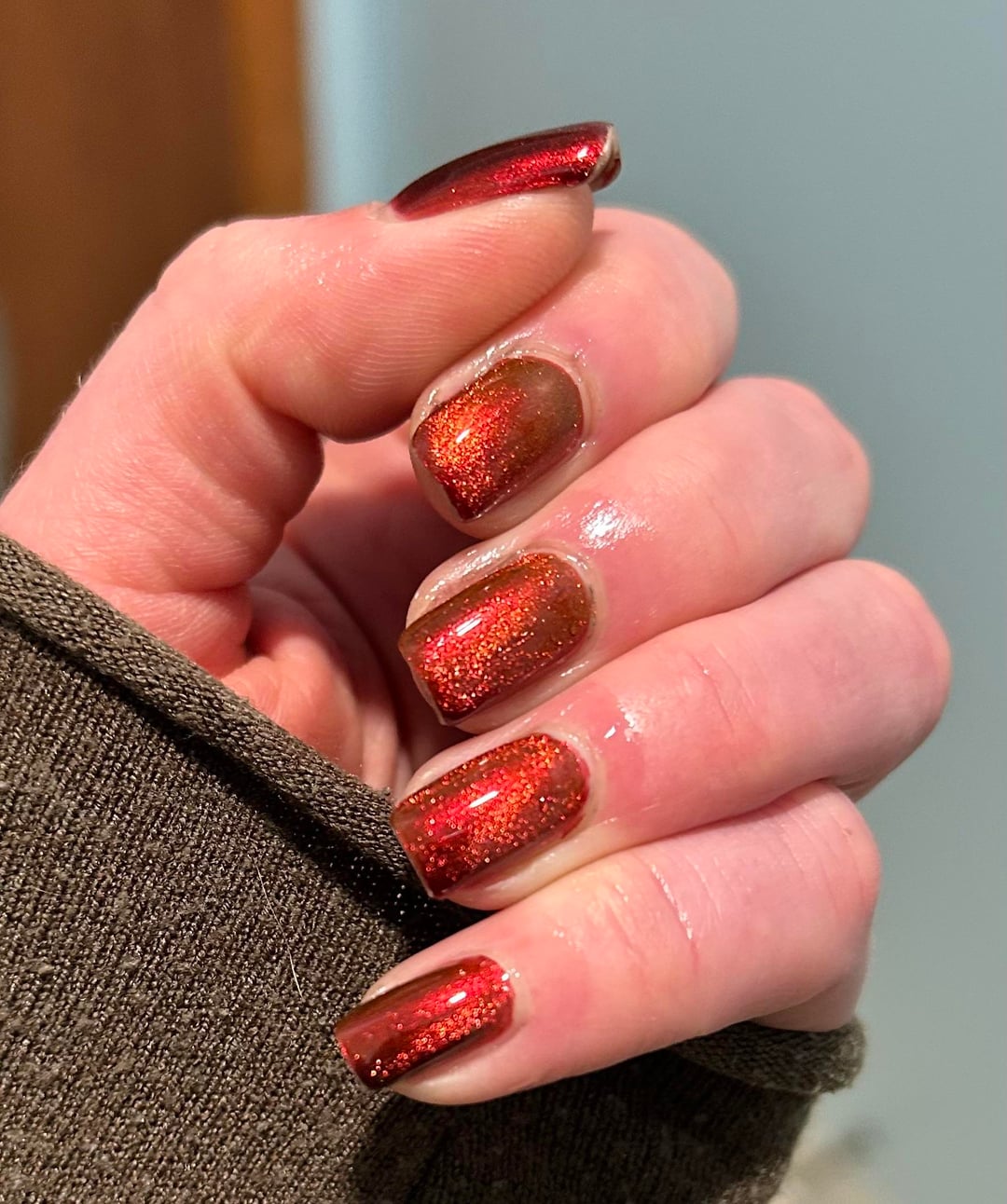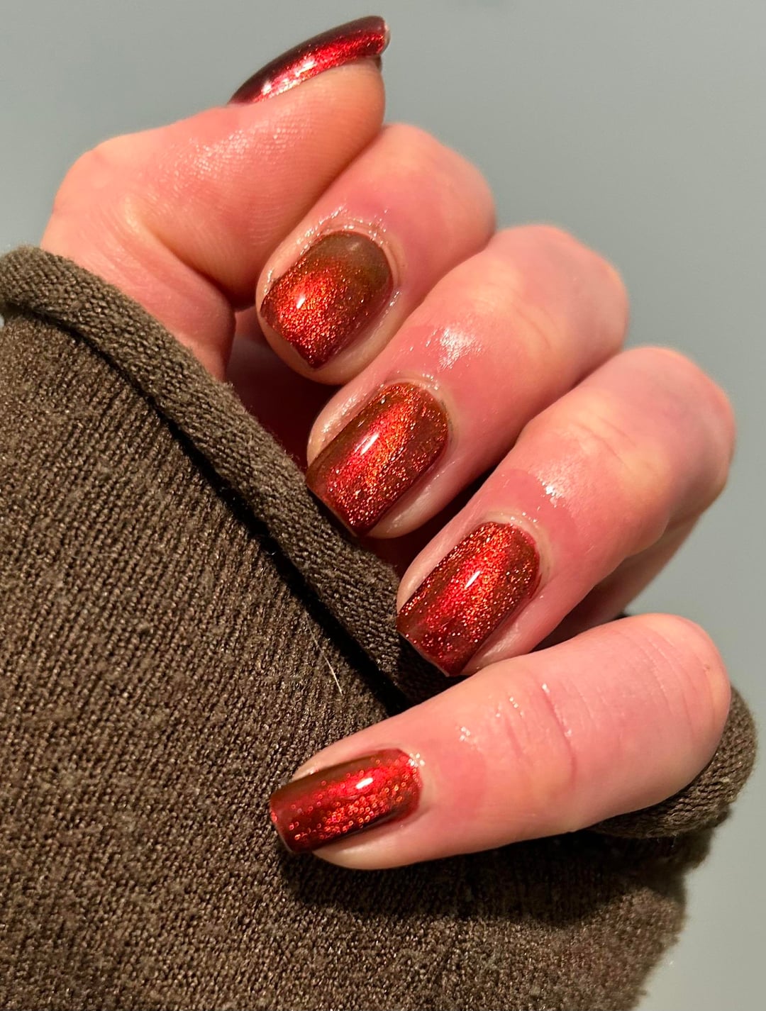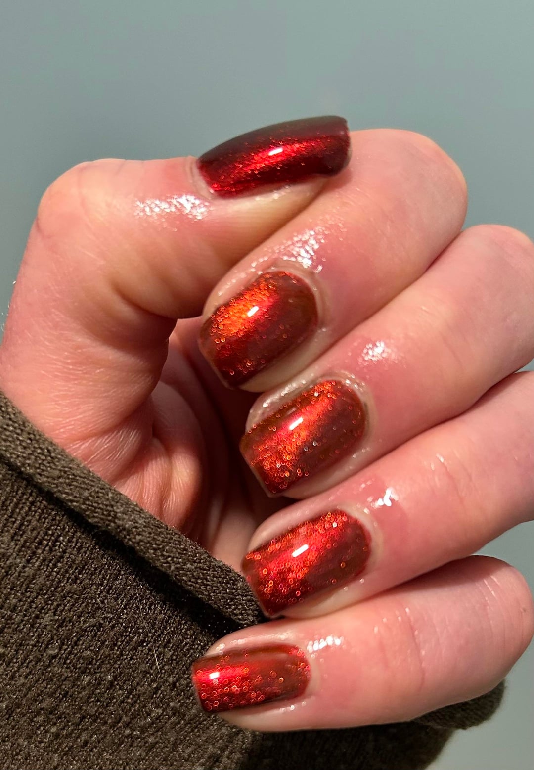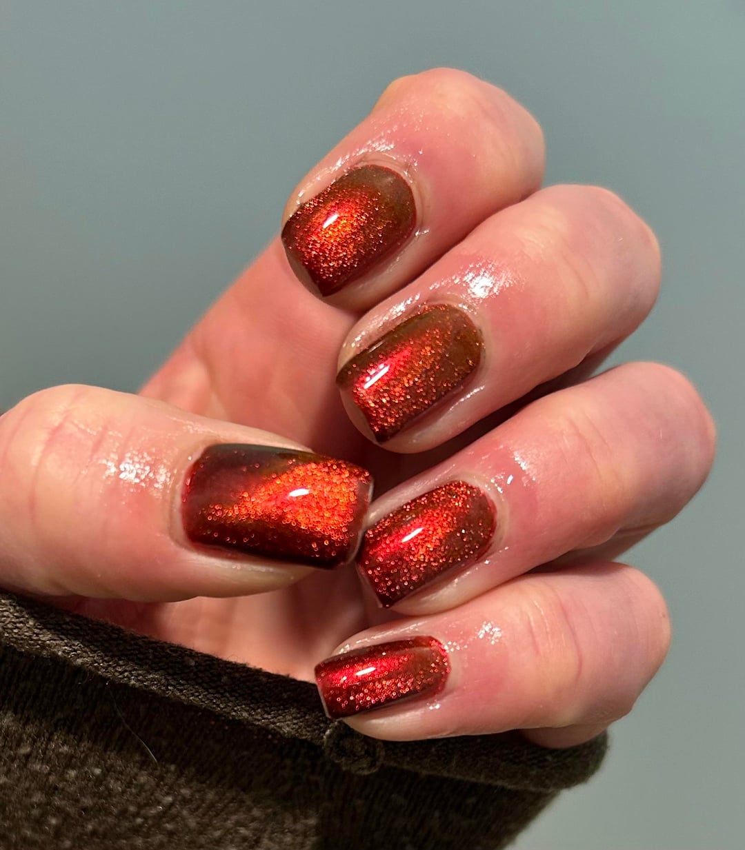 Arcana lacquer- Volcanicorn x3 with Starrily Magma (1)on top, magnetized. No base and Cuticula top coat