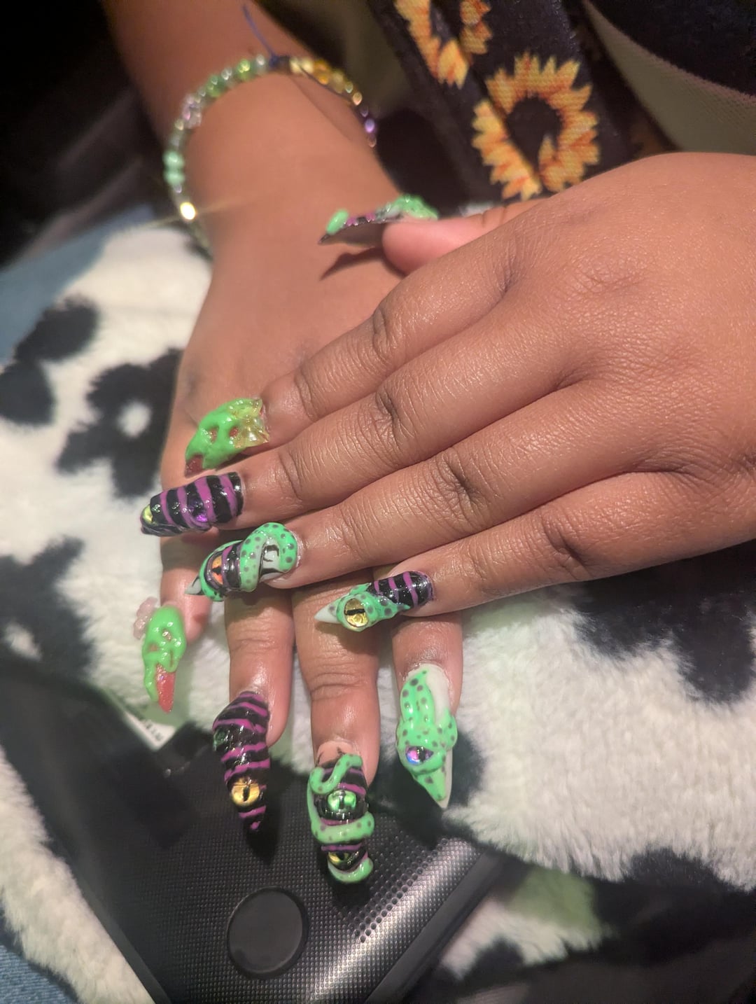 My baby girl has been teaching herself all things nails for a couple years and this is her set for Halloween. I'm so stinking proud of her 🥹 by bychanceof