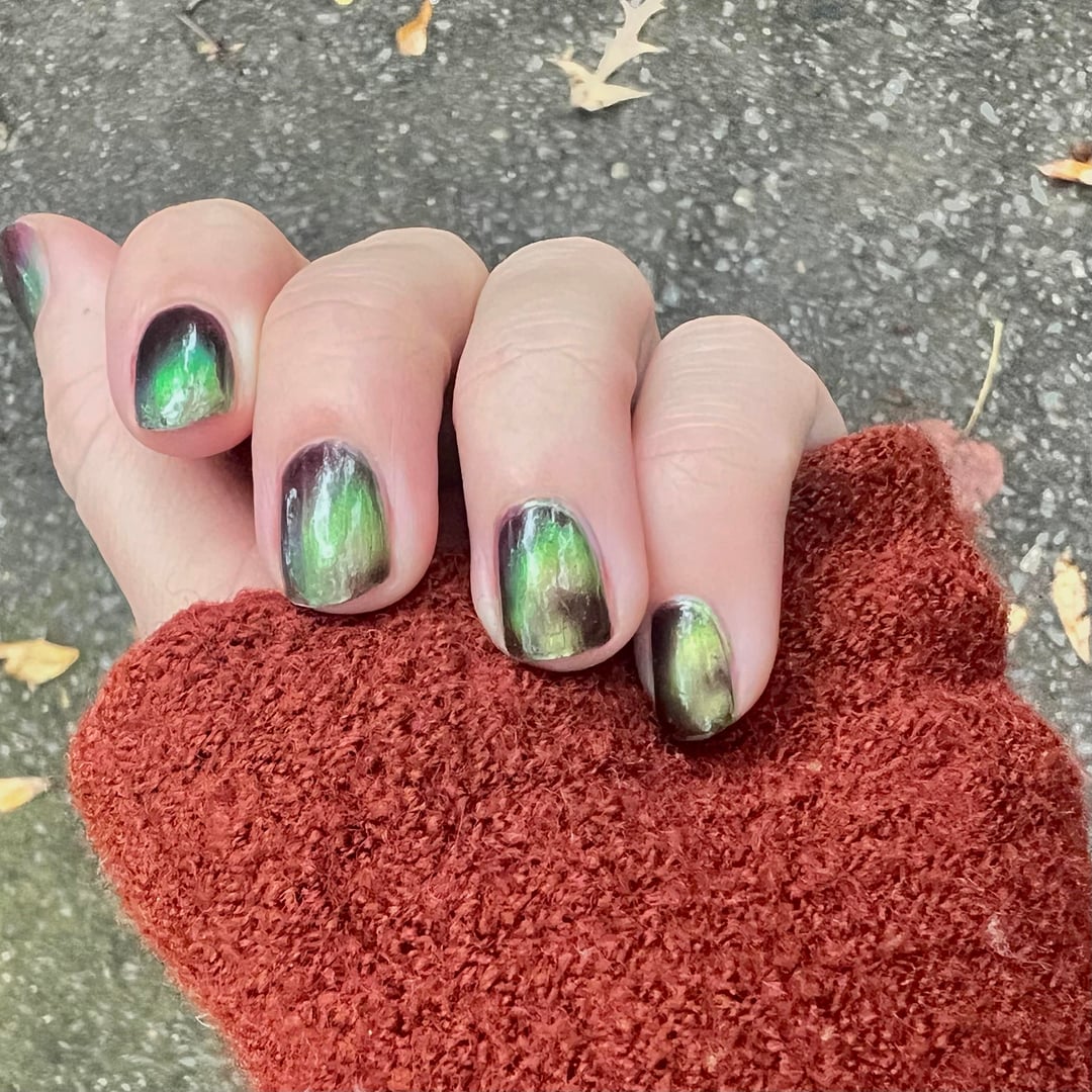 First time trying the glass bead with Forbidden Fruit- I usually do cat eye with this one. Pretty cool though because they feel like two different polishes in one!