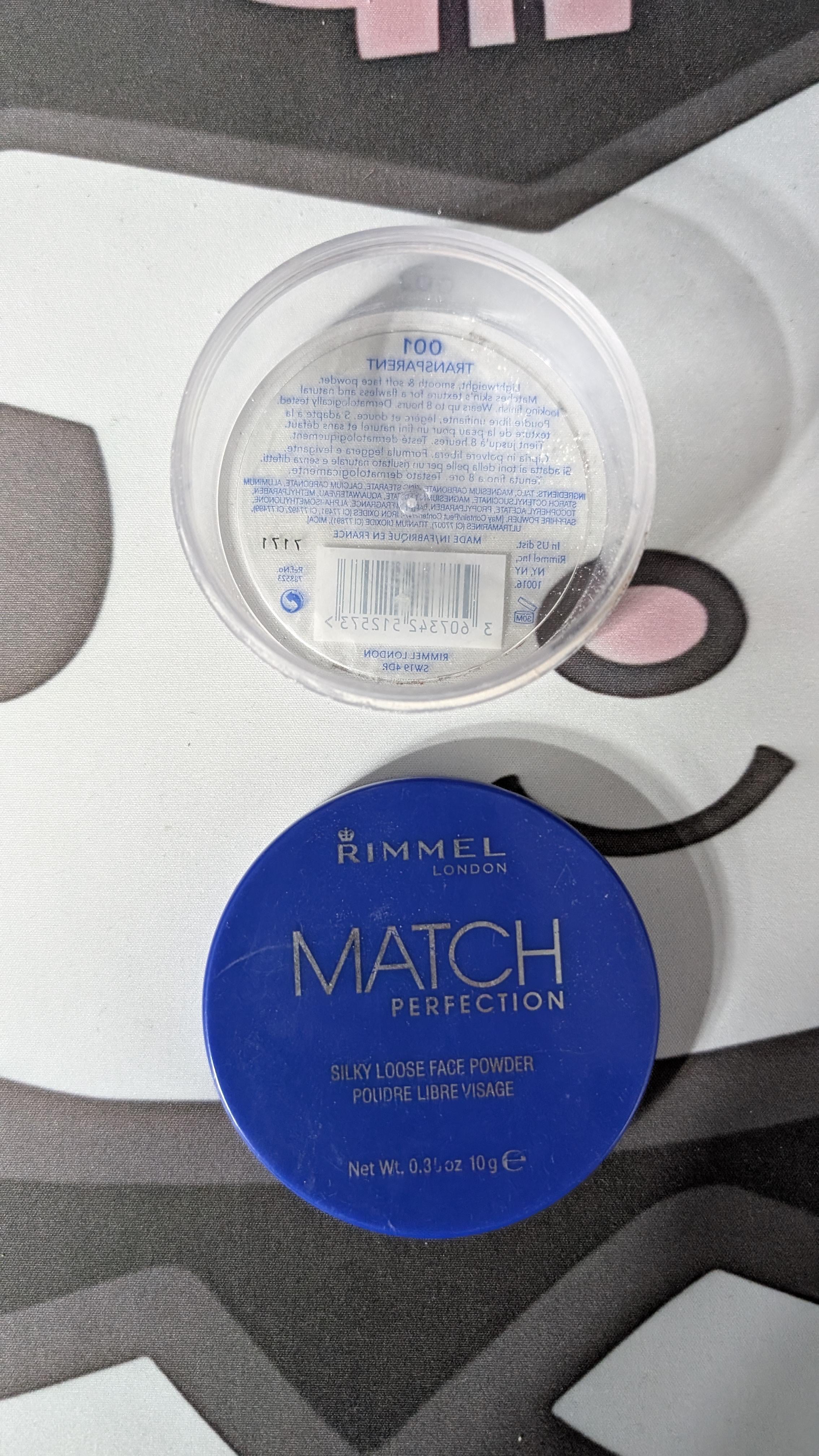 Rimmel Match Perfection in 001 transparent. I bought this one around 2019 πΆβπ«οΈ and finally took it out this year as my main powder. As you can see, this morning I finished it! It even field kinda weird, I've bought 3 of them and this one was the last! Won't be repurchasing, but it was my staple back in the day!