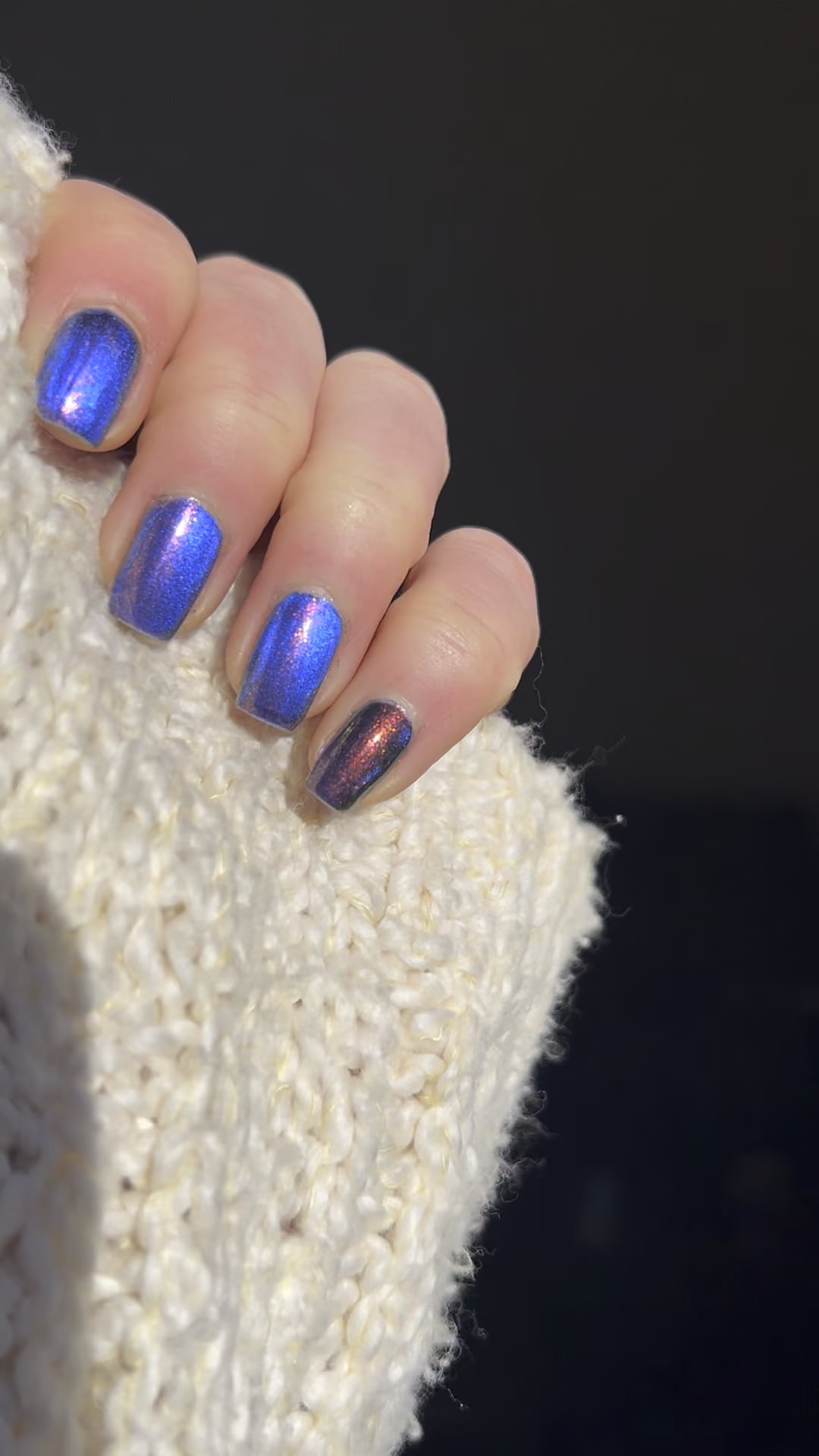 Love the bright blue flash on this! ILNP's Distorted in 3 coats(magnetized), Orly bonder base coat and Cuticula top coat by Affectionate_Buy_776