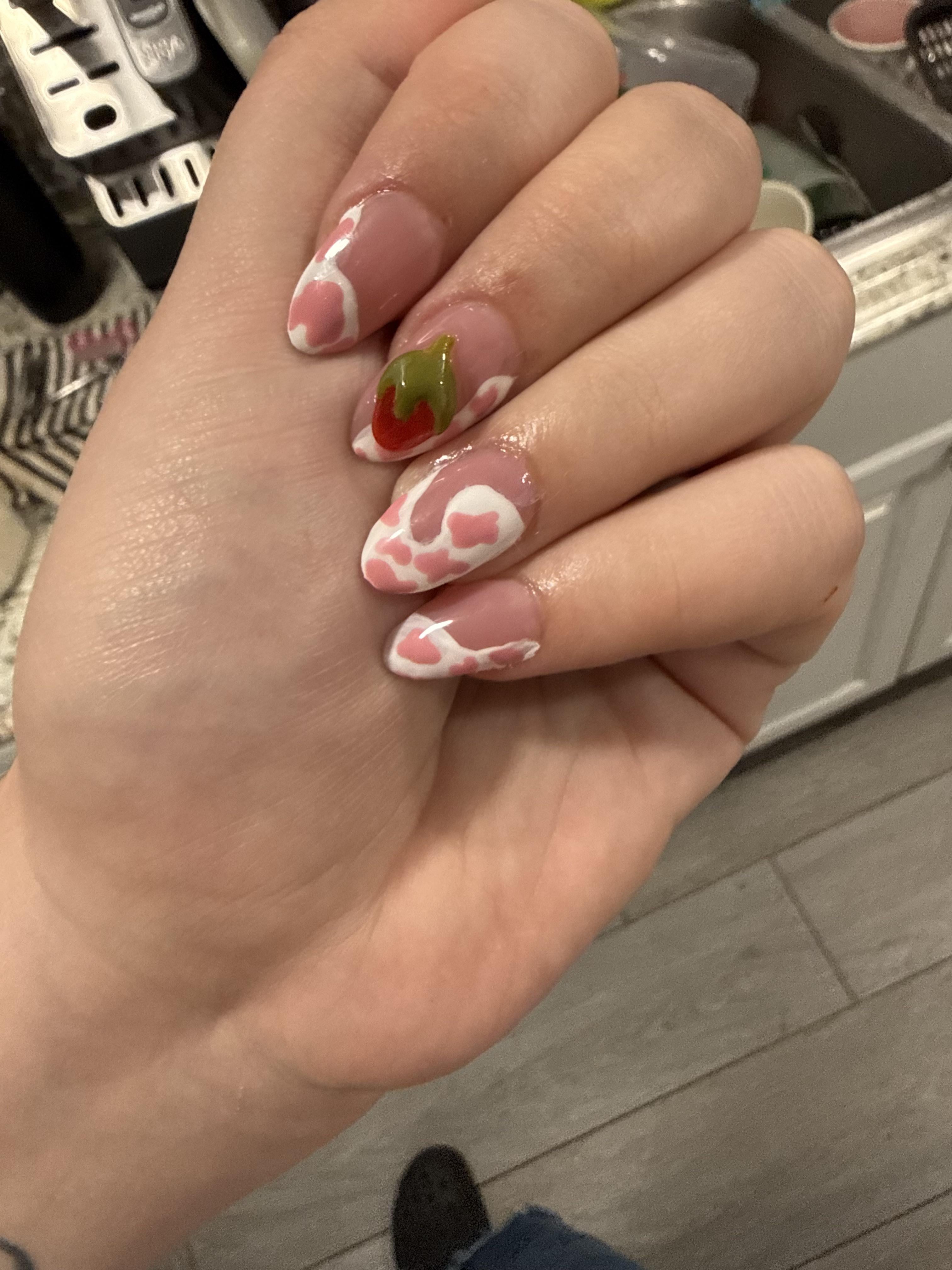 so so cute!!!! i’ve been dying to do some of my own strawberry cow nails :]