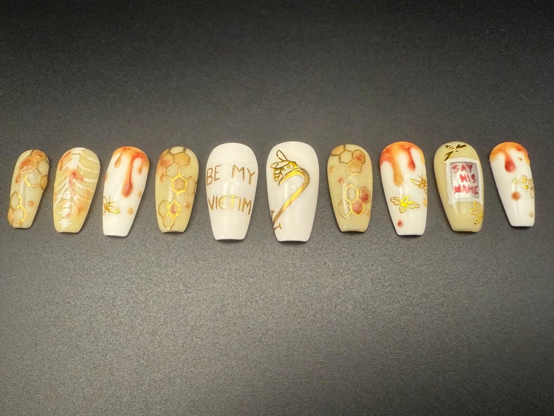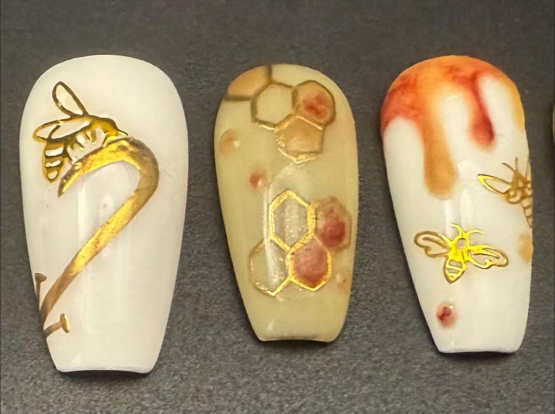 I’ve never used stickers before, but my mom bought some bee stickers that she wanted me to use so I incorporated them. Anything else that’s gold is hand painted isolated chrome.