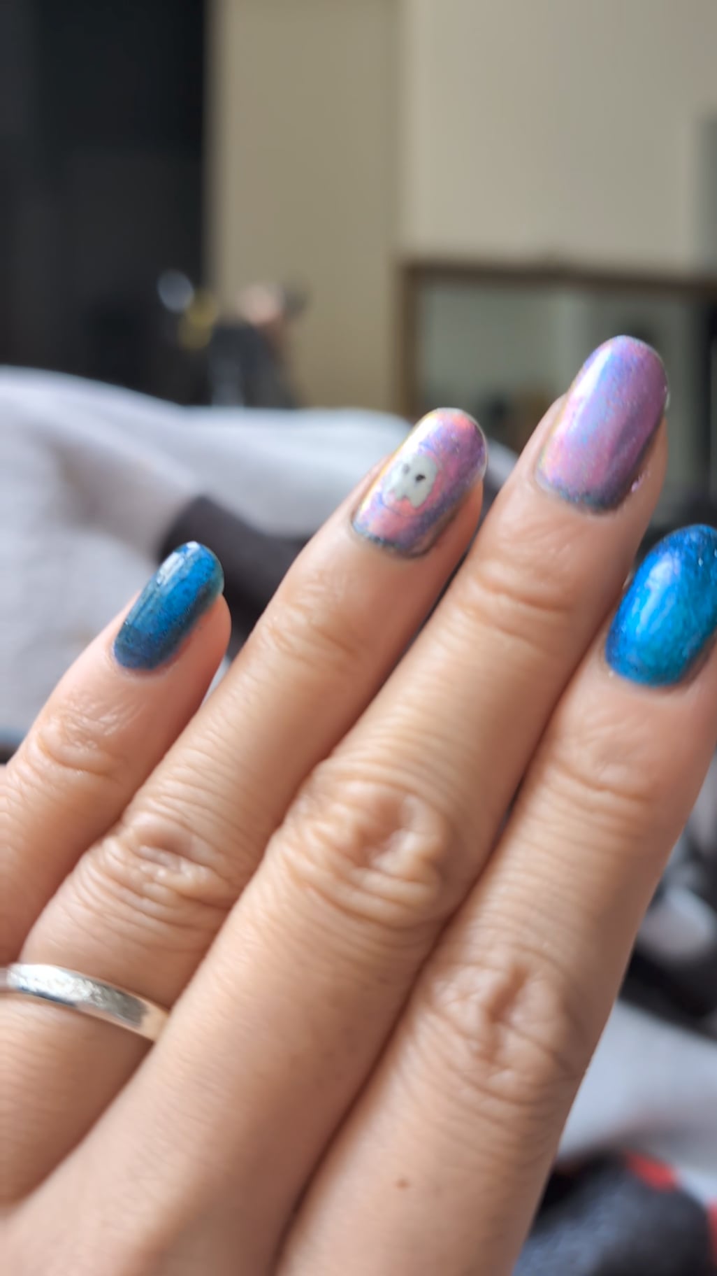 Items used: Nailtiques 2 Index and pinky: BKL the ultimate weapon Middle and Ring: SH reflection pool & Clionadh cosmetics Psilocin SH Insta-dri & Seche Vive by dinkinerdd
