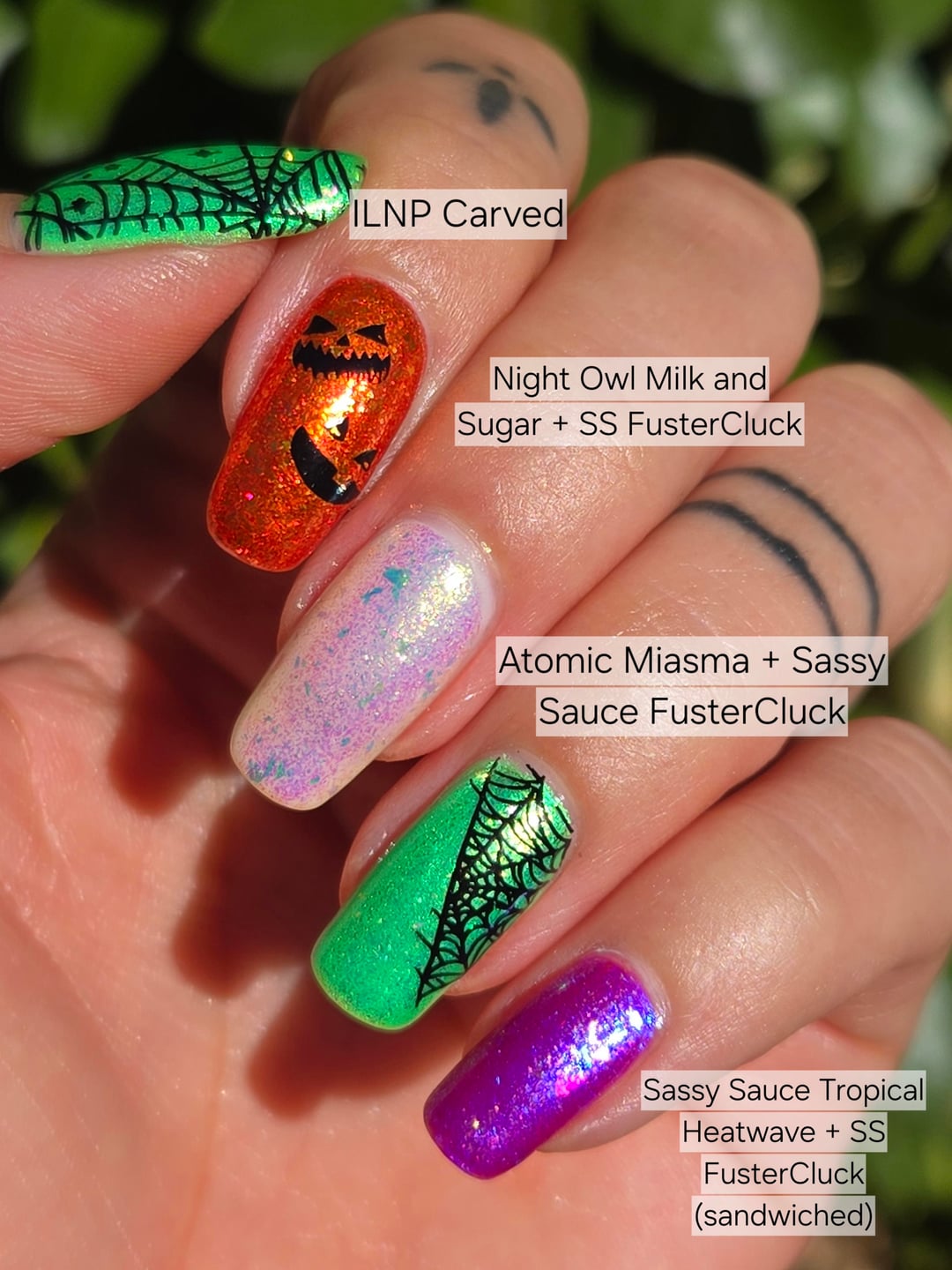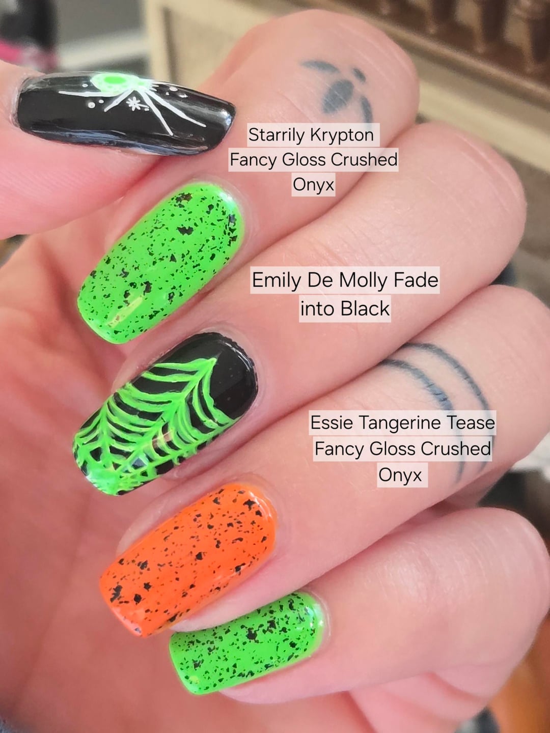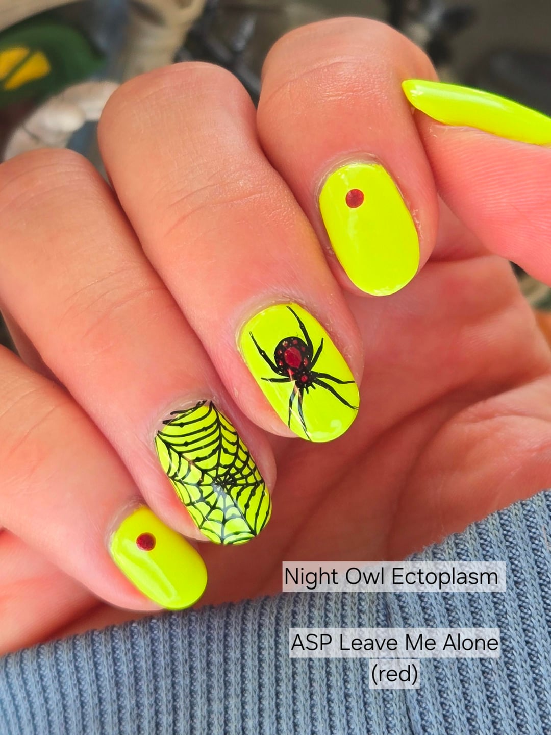 The variety! I love it. That neon green is now on my wishlist (I’ve been looking for a good slime green / acid green). Some really gorgeous Halloween manicures here – I think the spider designs are my favorites.