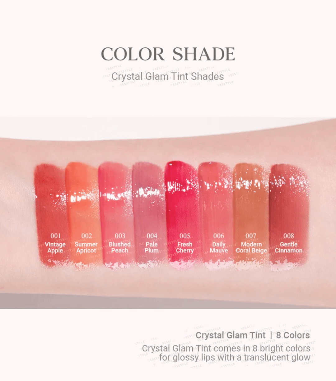 Reviewing and swatching Clio Crystal glam tint on medium neutral muted olive skin in indoor lighting.