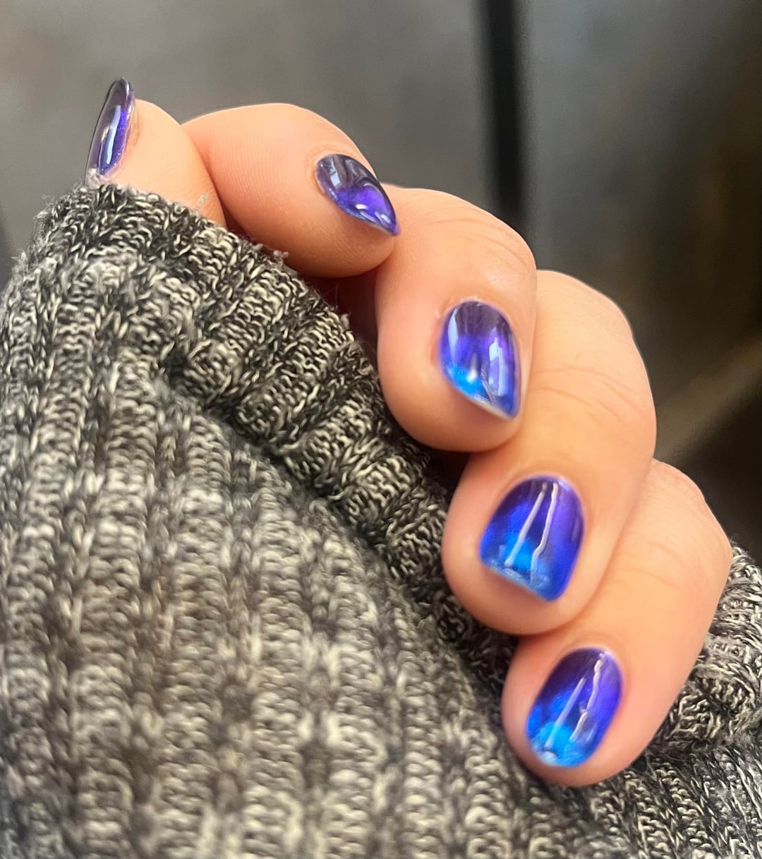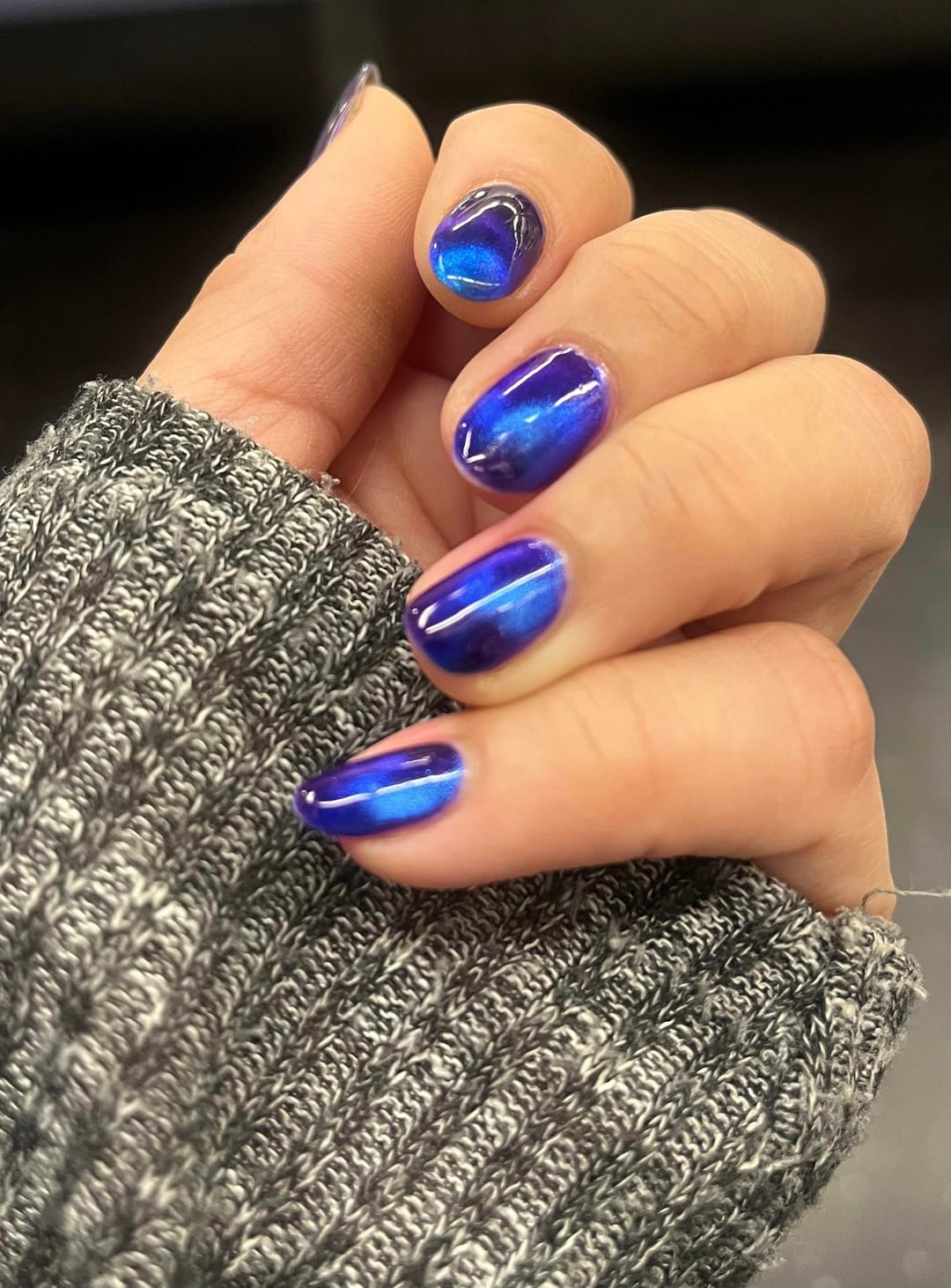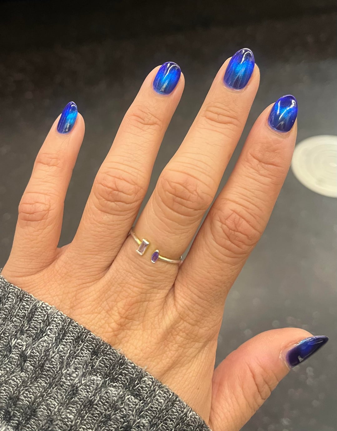 I didn’t realize just how much purple and indigo there is in this polish! I’ve seen folks describe it as cobalt blue, which it definitely also has, but it’s the shifts to violet that really gets me! BKL magnetics are so mesmerizing and multidimensional! And it’s so pigmented, which I appreciate since magnetics take forever. This was magnetized with the magnetic stirrer.