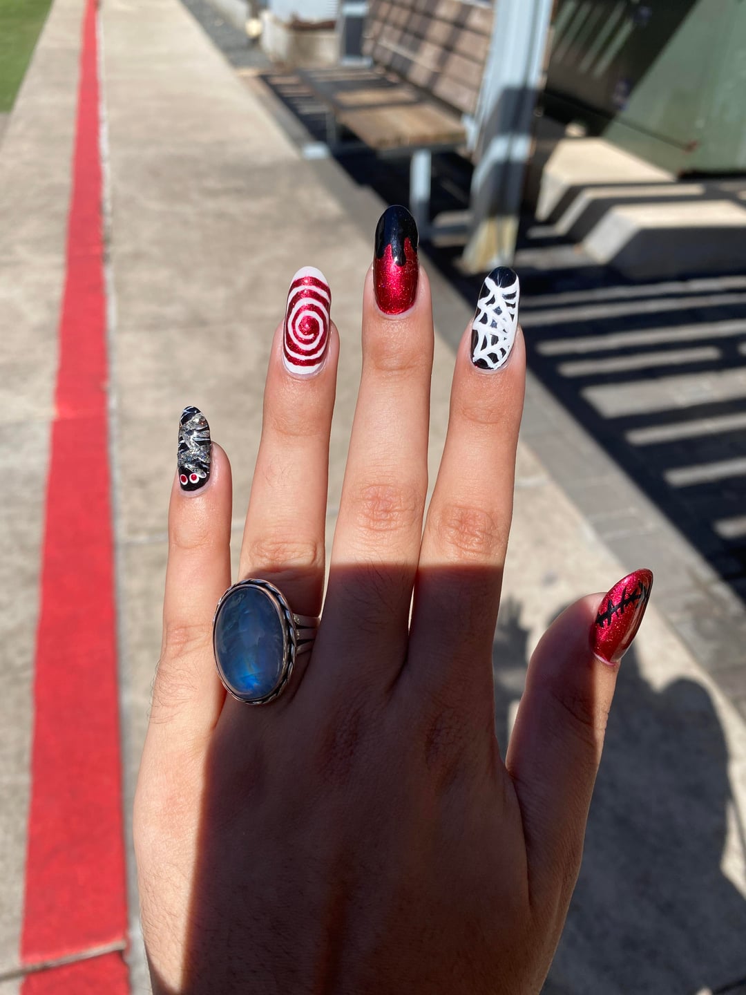 This is my second year doing Halloween nail art. After many hours and re-dos, this set is my favorite. The last pic is last yearβs nail art. by Beva20