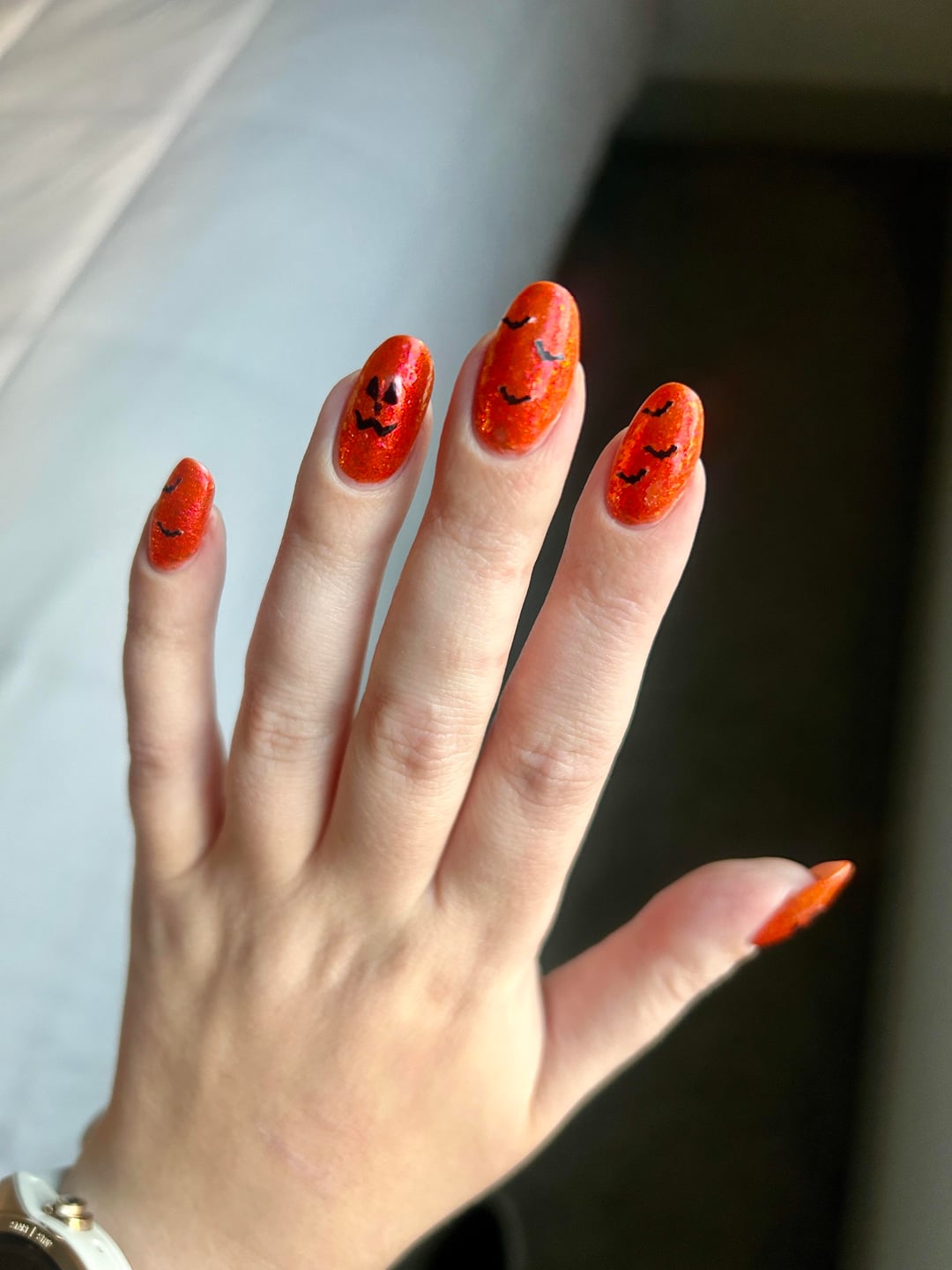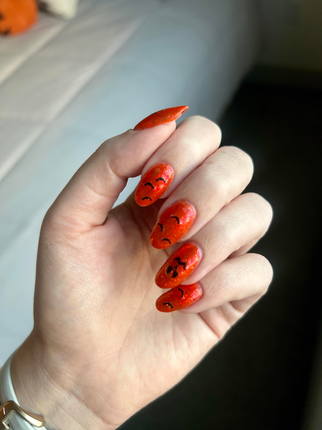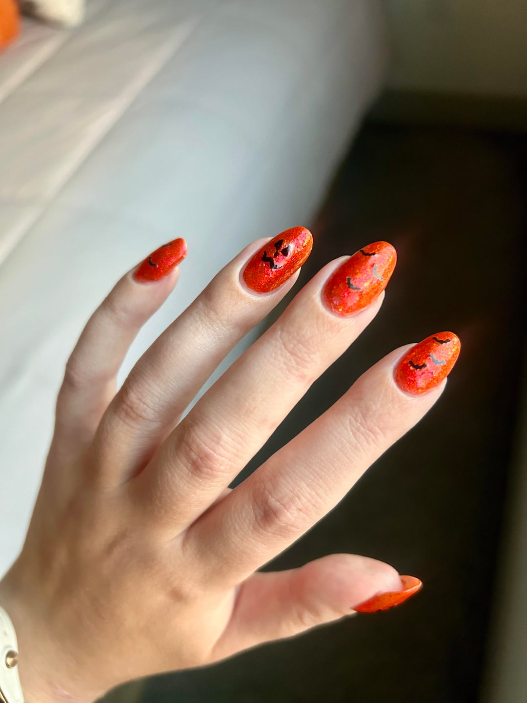 I’m not good at nail art by any means, but I wanted to attempt to do a jack o lantern Halloween mani.