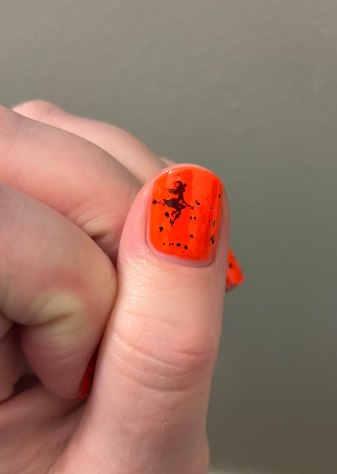 Witch sticker from IDDFEVE nail art stickers (big collection of cheap nail art stickers I got off Amazon a few years ago. Not sure I’d recommend them overall, but I do love my witch nail 🖤)