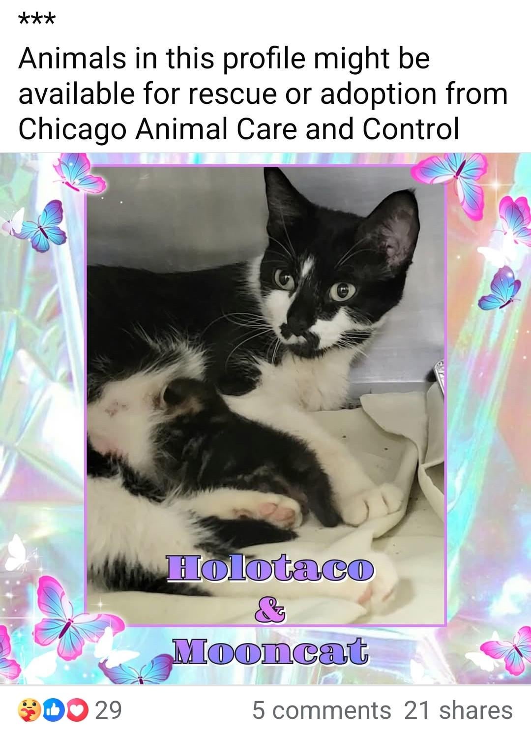 I foster cats in Chicago and this sweet mama and baby came across the Chicago Animal Care and Control transfer page looking for rescue. I love the lacquerista representation and wish I had room to foster them 😠hopefully another nail polish lover (or someone who's about to learn about nail polish from the names) will help them soon!