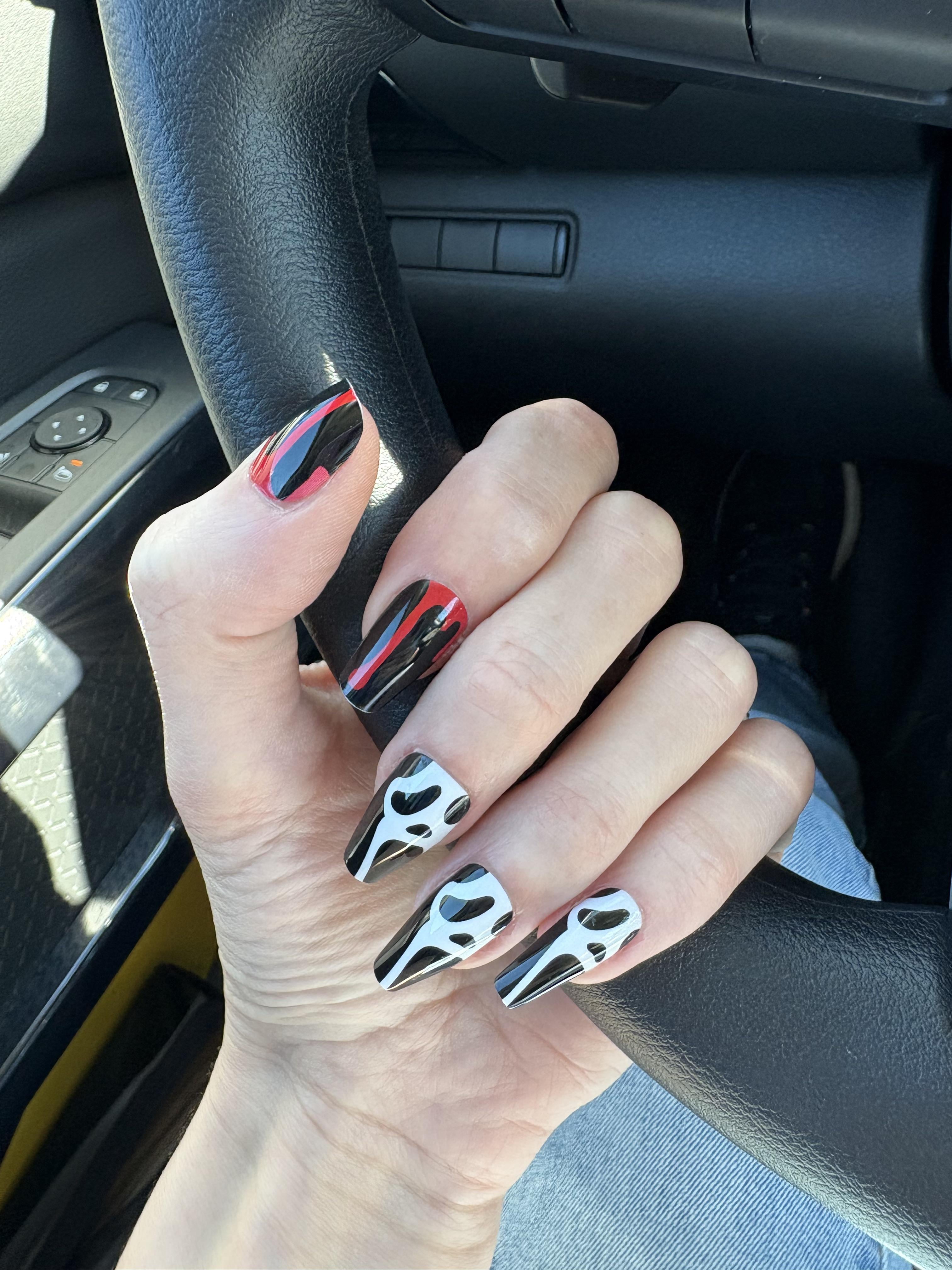 These are just cheap press ons from the Halloween aisle at Walmart so don’t judge the fit too harshly lol