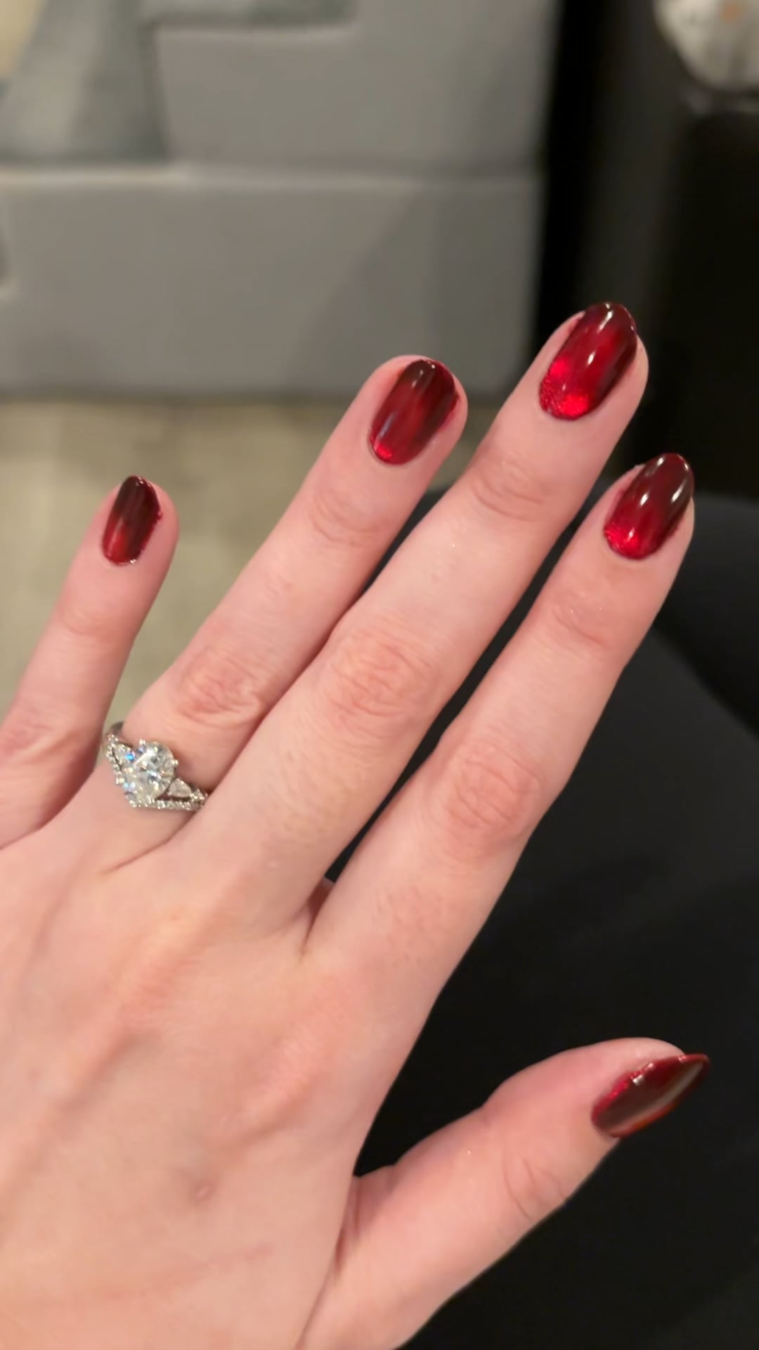 my halloween nails! 1x mooncat hardcore base coat 1x mooncat getting even primer 2x emily de molly fiery attraction 1x mooncat speed demon top coat, magnetized second coat of color and top coat for 90s each with the 5D magnet spinner from etsy. meant to put a coat of black underneath and forgot but she’s still gorg