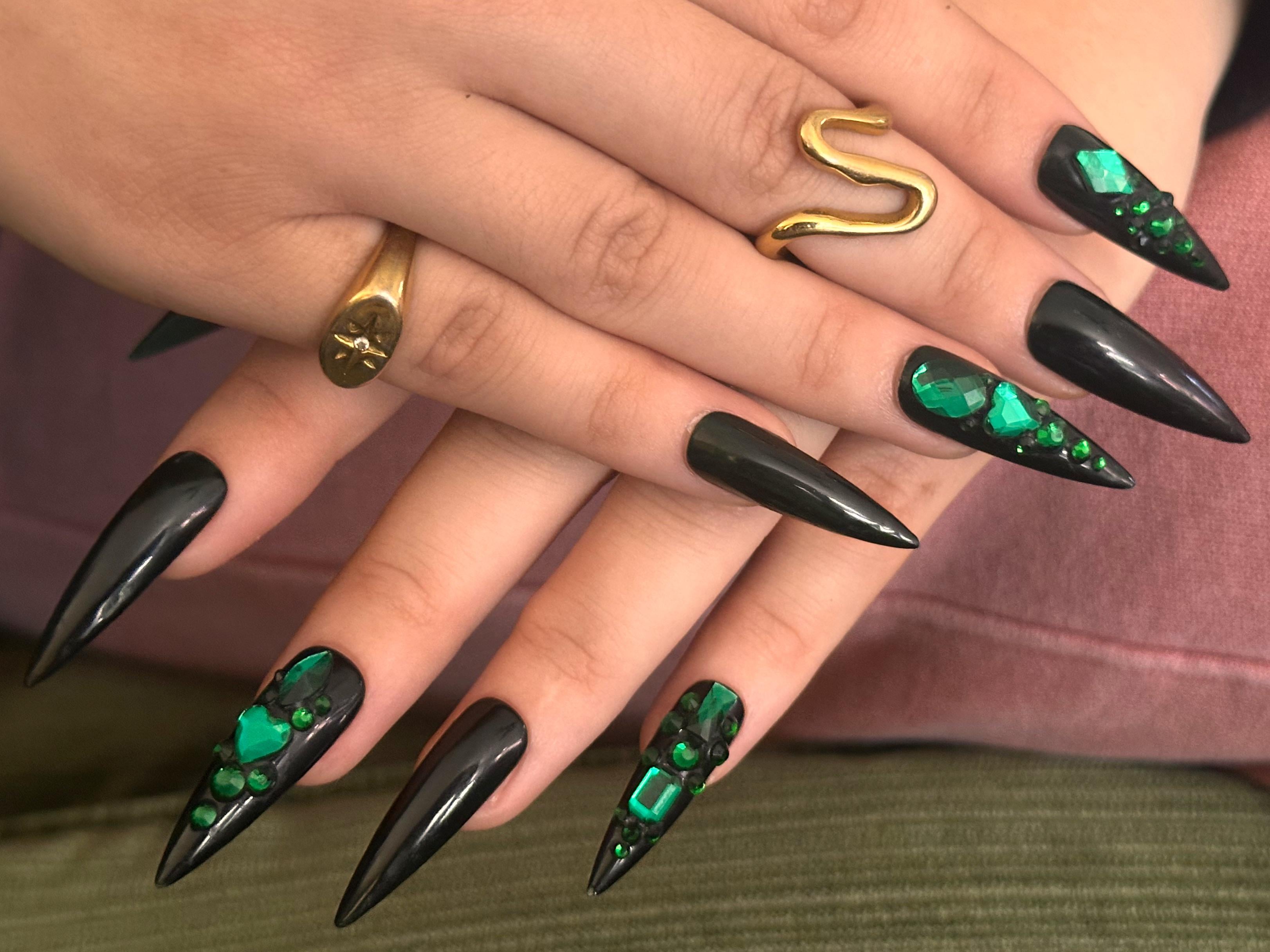 I also had gems on the thumbs but I could not get a good pic 😭😭😭 these nails felt fabulous ✨💚 by 3dogsand1cat