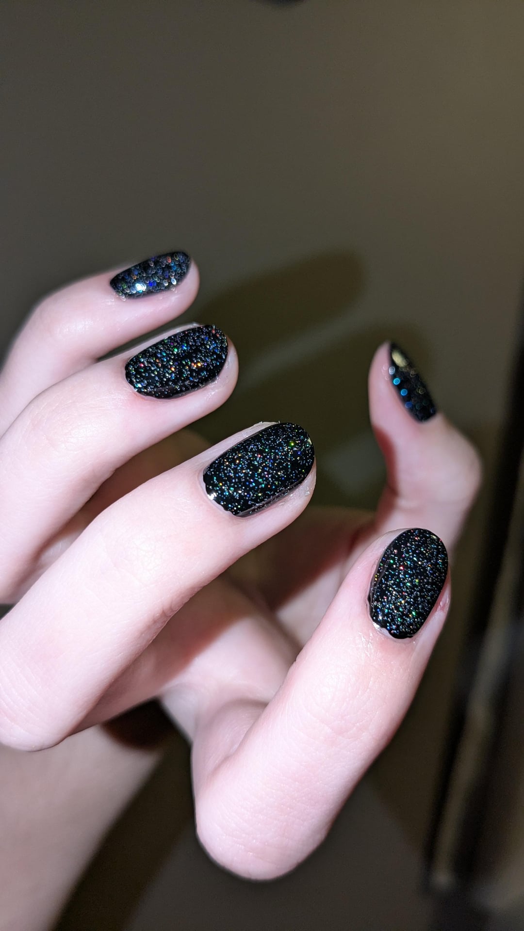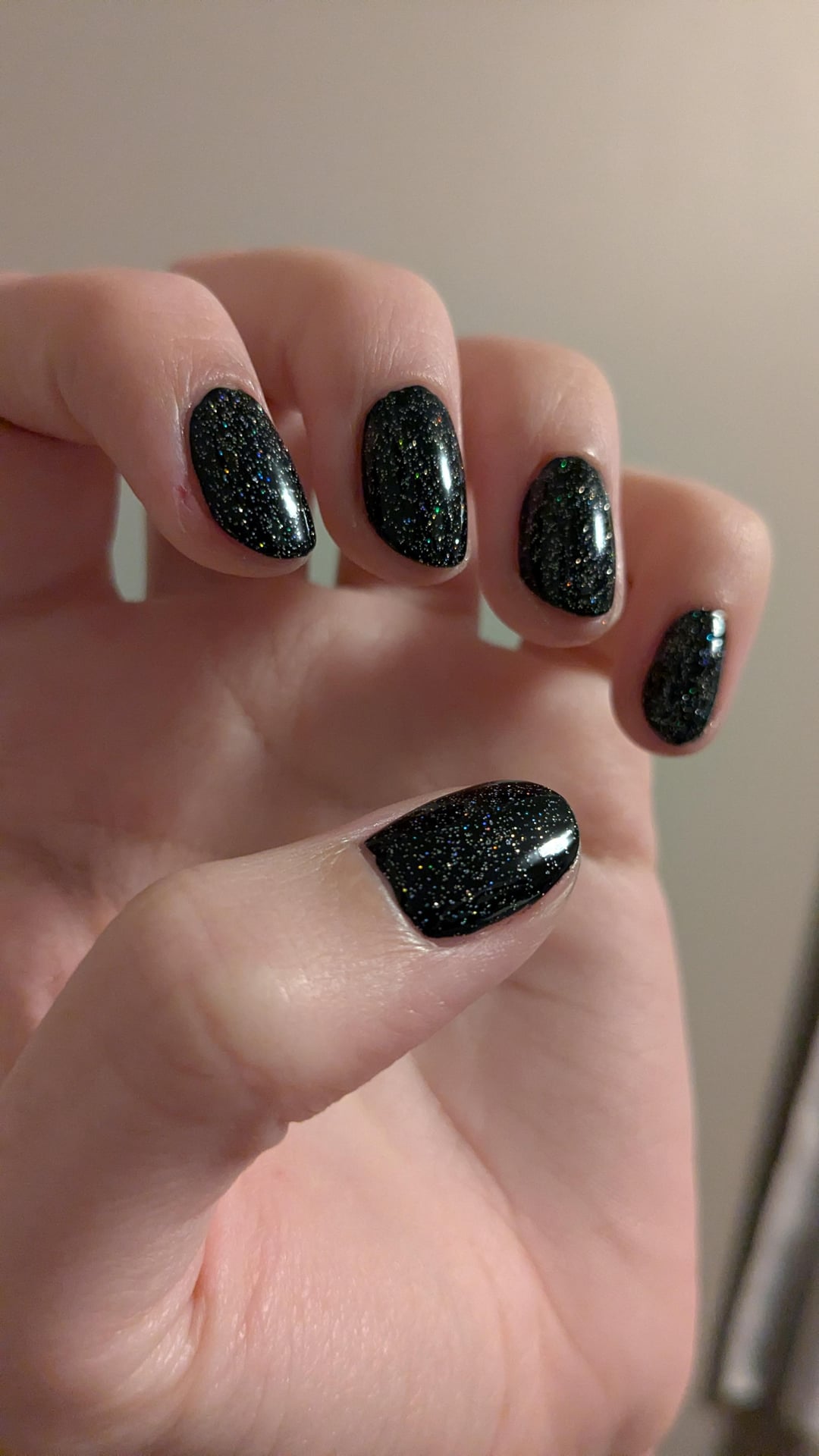 ILNP Lockup Basecoat, 2 coats of Black Heart by Sally Hansen, 1 coat of Fairy Dust by Chinaglaze, then Sally Hansen Ultimate Shield Topcoat. by PrincessaNocturna