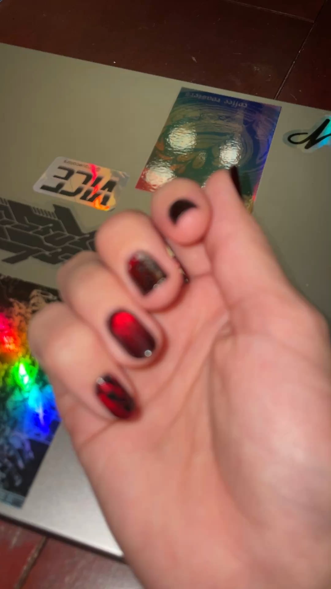 – Pointer: Seche vite applied after magnetic layer was fully dried. I sort of swapped between glass bead and velvet in thinner coats while applying for my uhhh topping nails