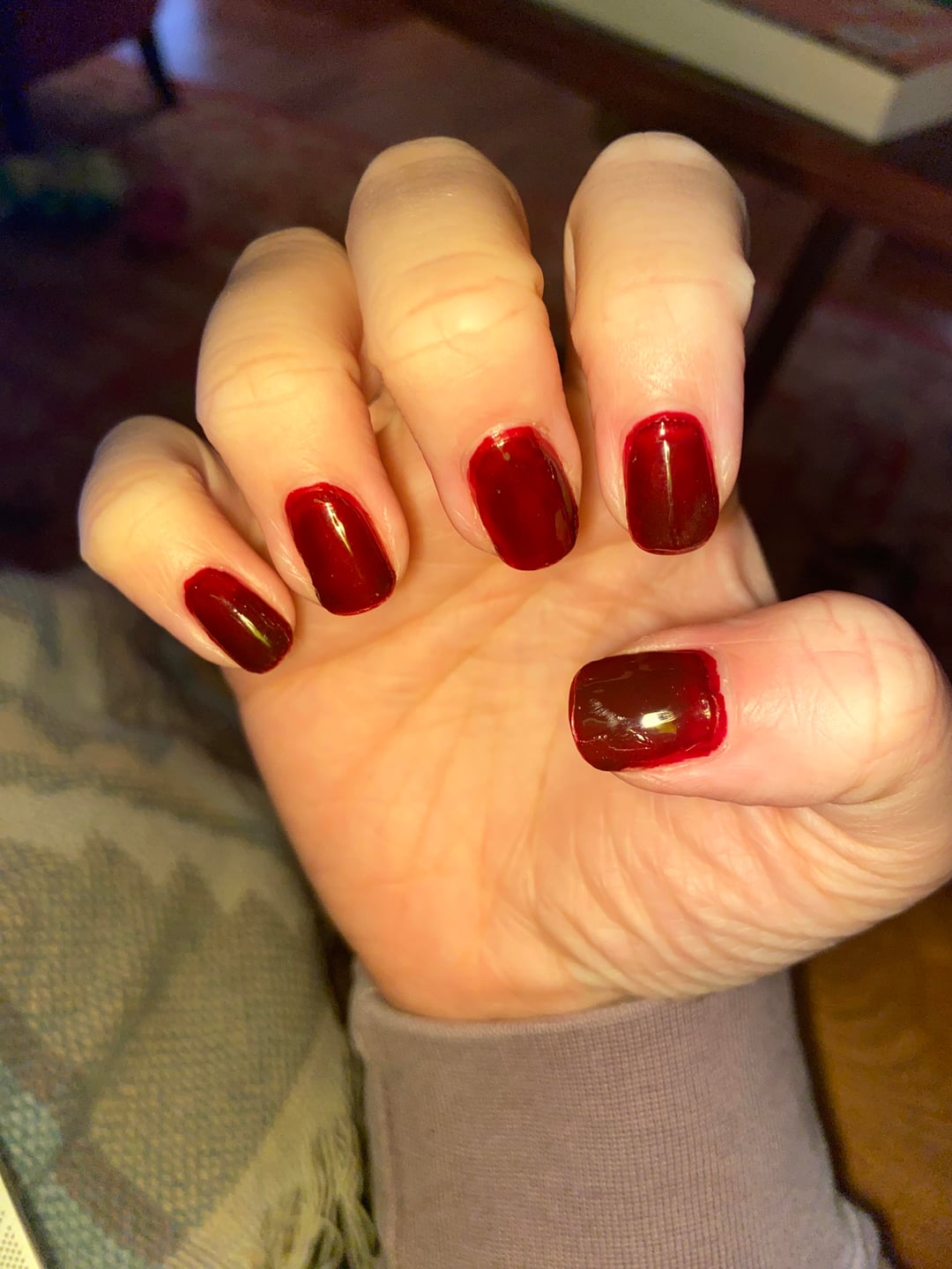 Things I notice are the layers, there are areas a top coat wasn’t completely applied so I see spots without, the tips of my nails are not done, some flooding, and overall just patchy looking.