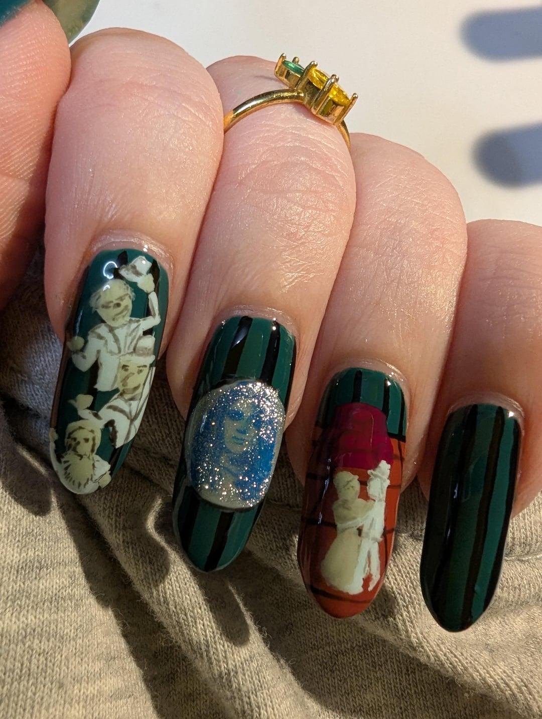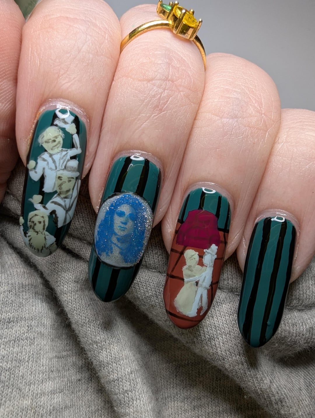 Linry on October 31, 2025 2:08 pm [PR] I did receive Tyler’s Trinkets “Quick dry top coat” in PR with no obligation to post/share my swatches. Thank you so much Tyler’s trinkets! Products used: Top Coat: Seche Vite Base coat : Home made peel off base, seche clear Topcoat [PR] Tyler’s Trinkets: quick dry top coat HoloTaco: glow in the dark taco, aqua glow in the dark taco, I’m over brew, magnetic taco, one coat black, brick wall Color club: meet me at the rink, riding dirty Starrily : immortal jelly, ghost jelly Zoya: ono, neely L.A. Colors : wispy blue Saviland : light green h04 Mundo de unas : AZ the witcher Stamping Polish is from a brand I no longer support because they steal swatchers photos. Born Pretty bp-tvs11