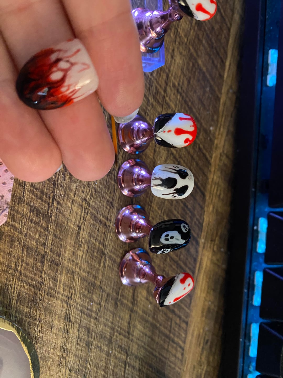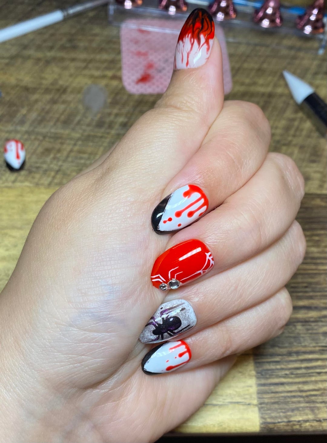 Vampire nails I did for myself! Went trick or treating and handing out candy with my daughter and husband and spent like 3 hours on these things lol!!