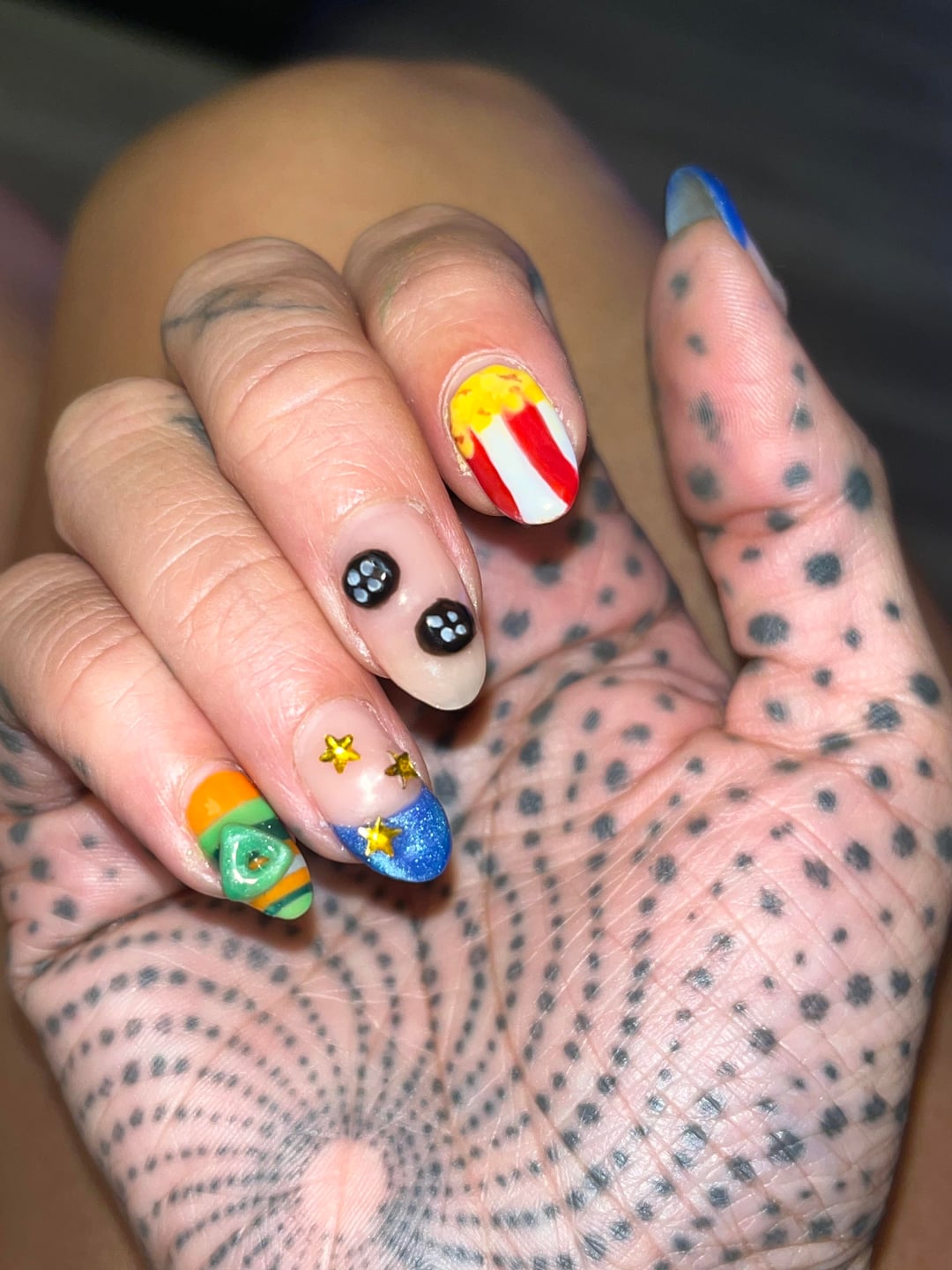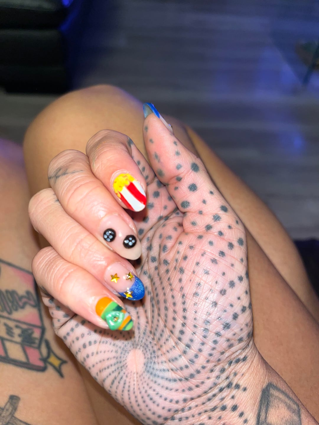 I always have loved getting my nails done but, it’s also gotten expensive and I have enough time in my day to try so I decided to buy my own nail supplies and start 🙂 here’s my 5th time ever doing my nails, no extension, natural nail. Here’s my attempt at coraline nails.