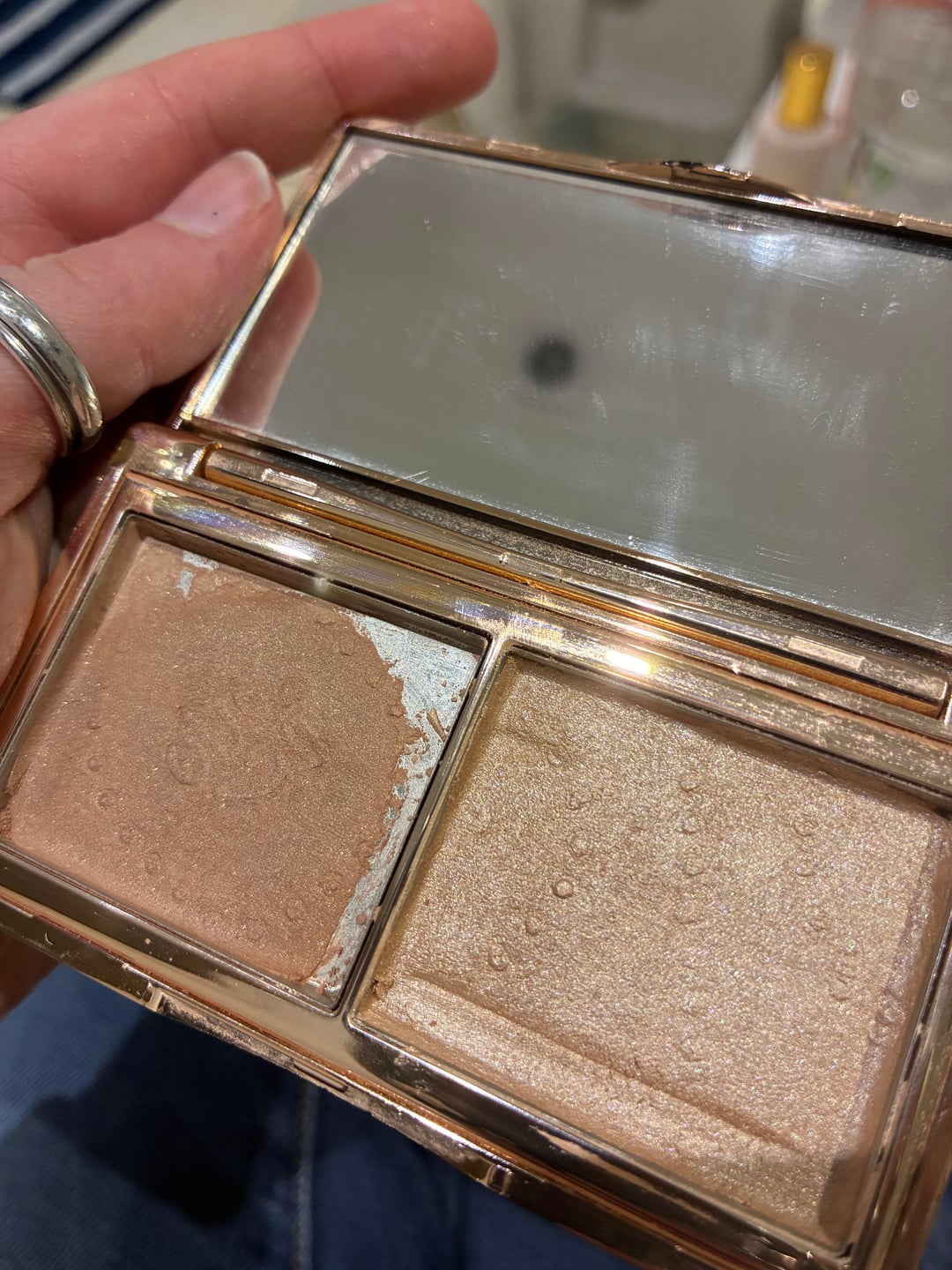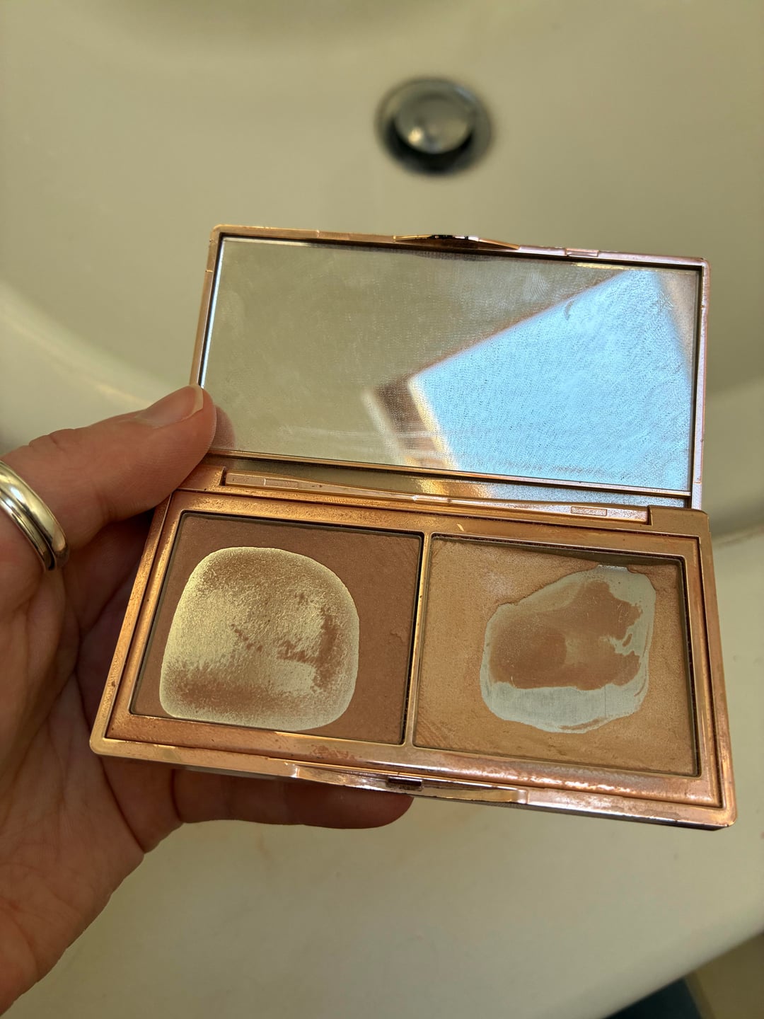Charlotte Tilbury mini bronze and glow palette. I’ve been meaning to repress the bronzer for ages as it’s been difficult to pick up on a brush and I thought I might as well do the highlighter whilst I’m at it! by unoriginalthoughts18