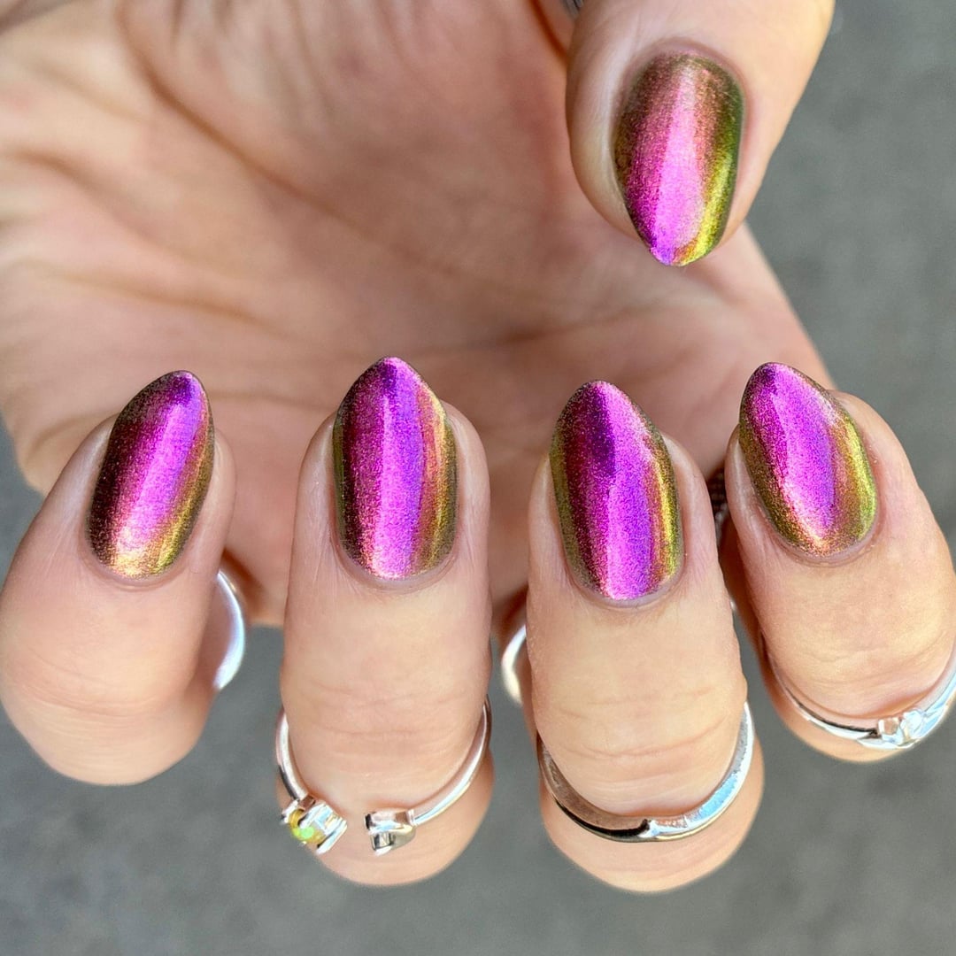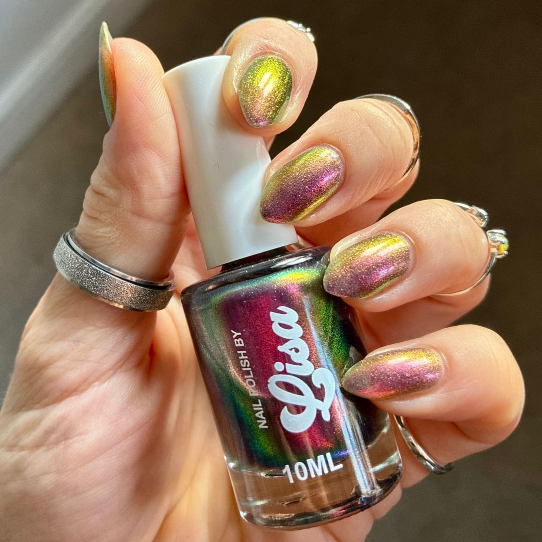 This magically shifty polish is ‘Spellbinding’ by Cosmetics by Lisa. Shown in 3 coats, with a glossy topcoat.