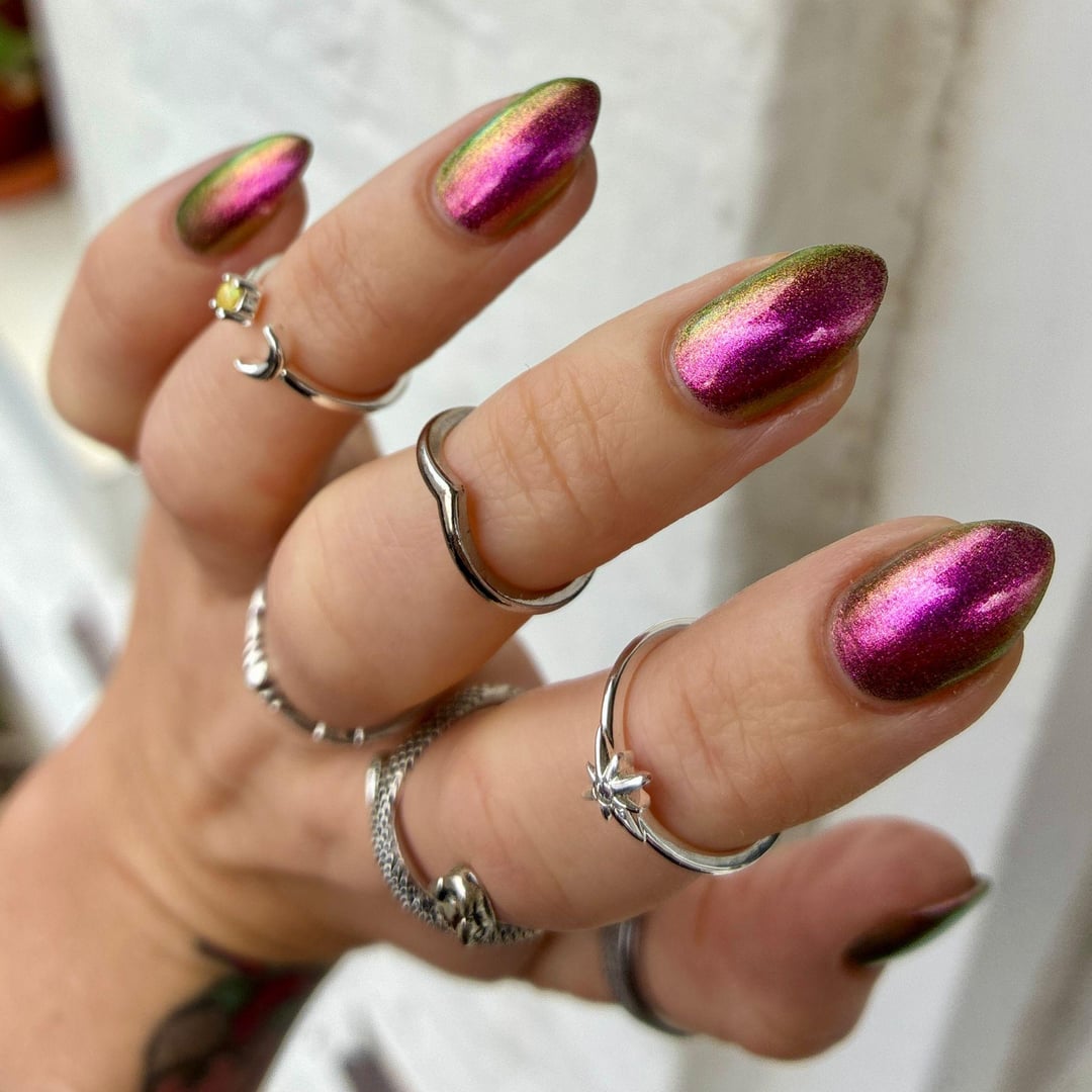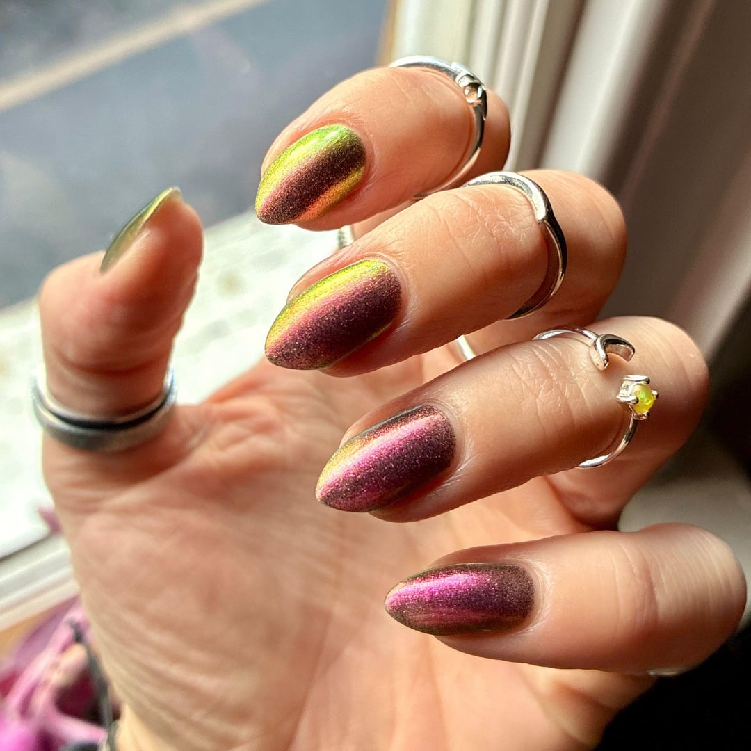 I have a nail page on insta (I’m lookatmynailsdamnit on there too :P) and I’m currently trying to do better at showcasing small indie brands from here in the UK. When I tried this polish, I was truly blown away by Lisa’s creation. I really didn’t expect something so magical from such a teeny tiny brand. This shifts through a range of intense shades and kept me thoroughly distracted throughout the week that I wore it!