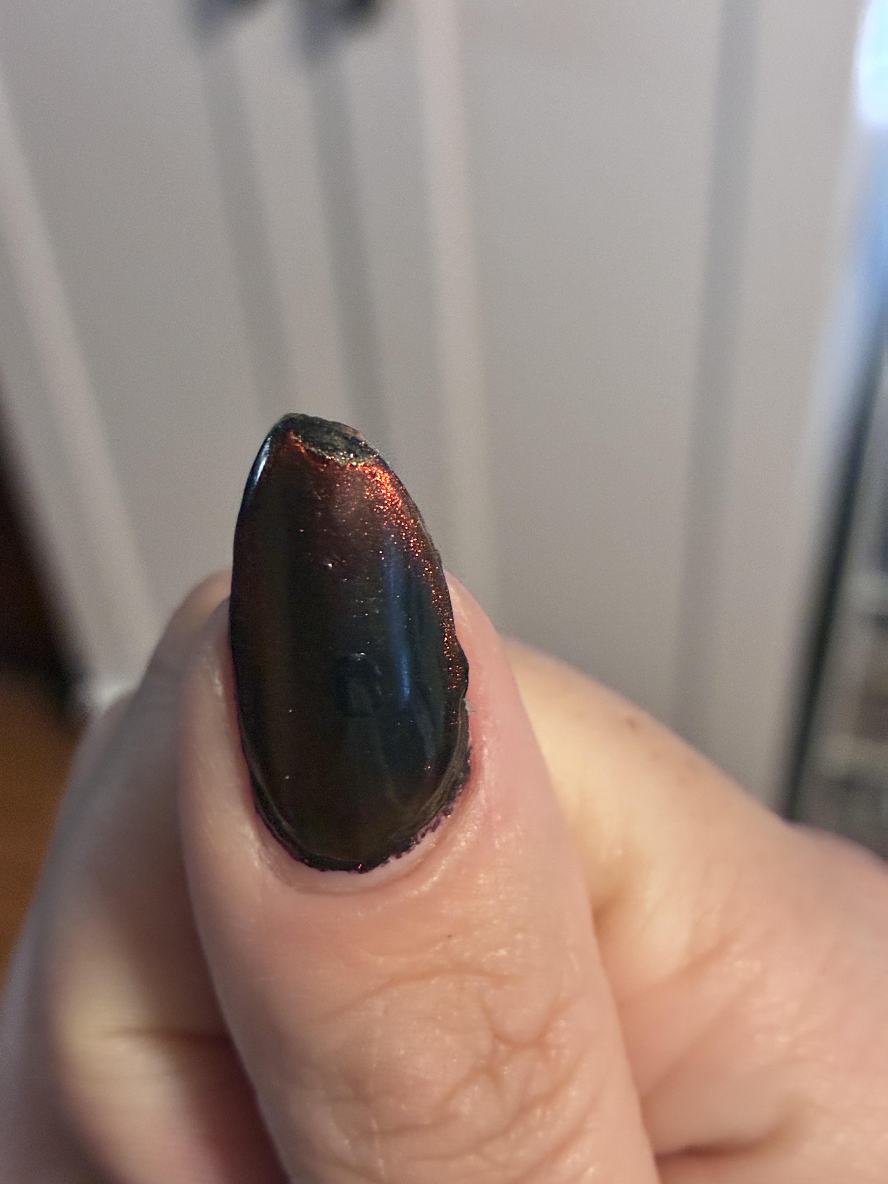 In case a product list is needed: Starrily’s Magma over BKL Void with Glisten & Glow QDTC. Singed edge courtesy of a Bic lighter I used when attempting to light a fall candle 😫