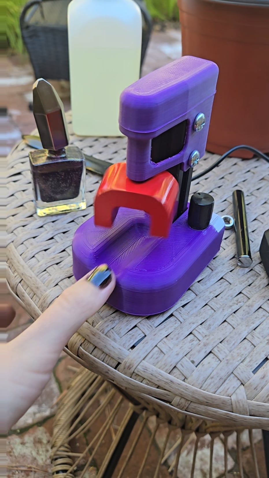 I showed him all the posts on this sub and he got excited about being able to overengineer a gadget for me lol. It's an arduino that controls a motor that has a little pulley system in the top to drive the shaft with the magnet. The knob on the right spins to control speed. We're both electrical engineers so I also fully could have made this but I am a passenger princess first, woman in stem second 🥰 polish is illusionist by mooncat