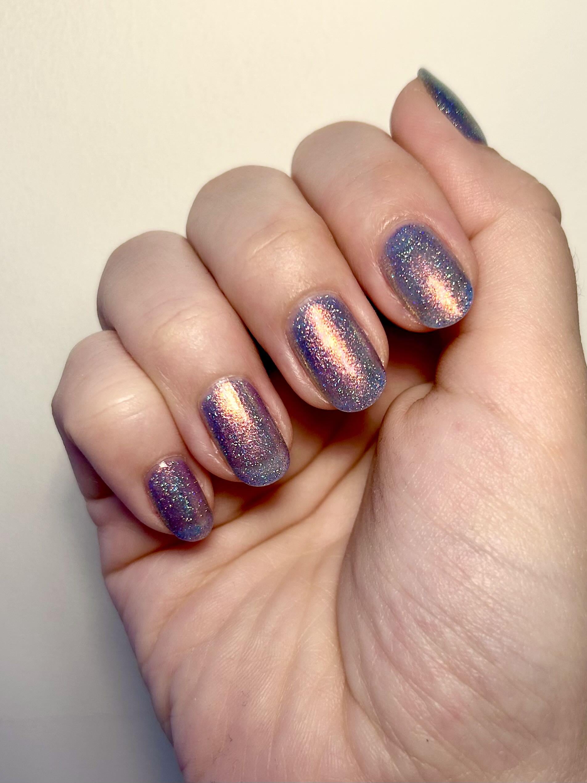 (base: Essie – Strong start; color: ILNP – Bluebell; top: KBShimmer – Clearly On Top)