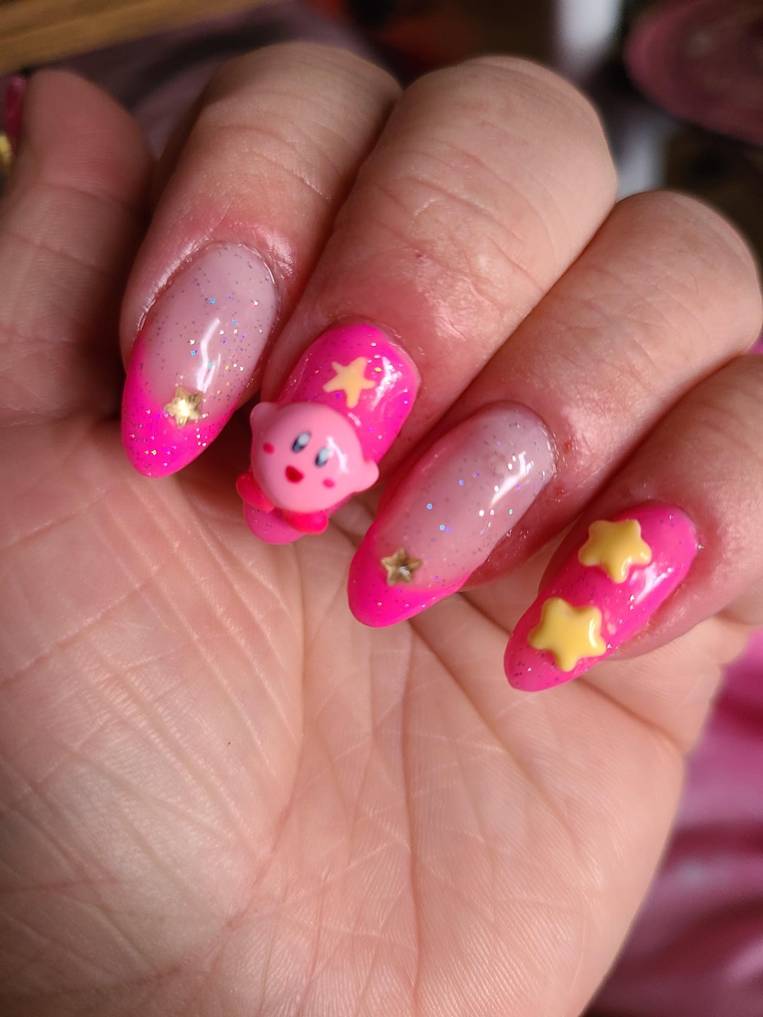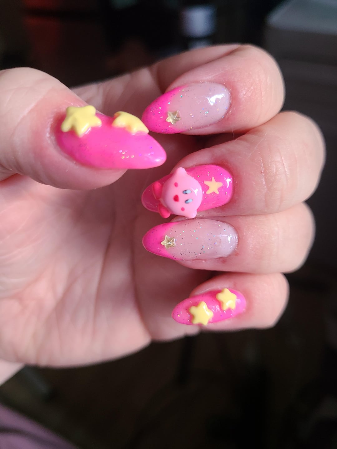 Did some kirby nails on myself I sculpted and painted the kirby and stars