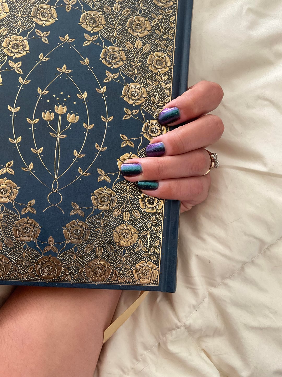 Base: Sally Hanson Advanced Hard As Nails Strengthener Polish: ILNP Deep Space Top: Cuticula Limitless Scented Quick Dry Top Coat by FugginCandle