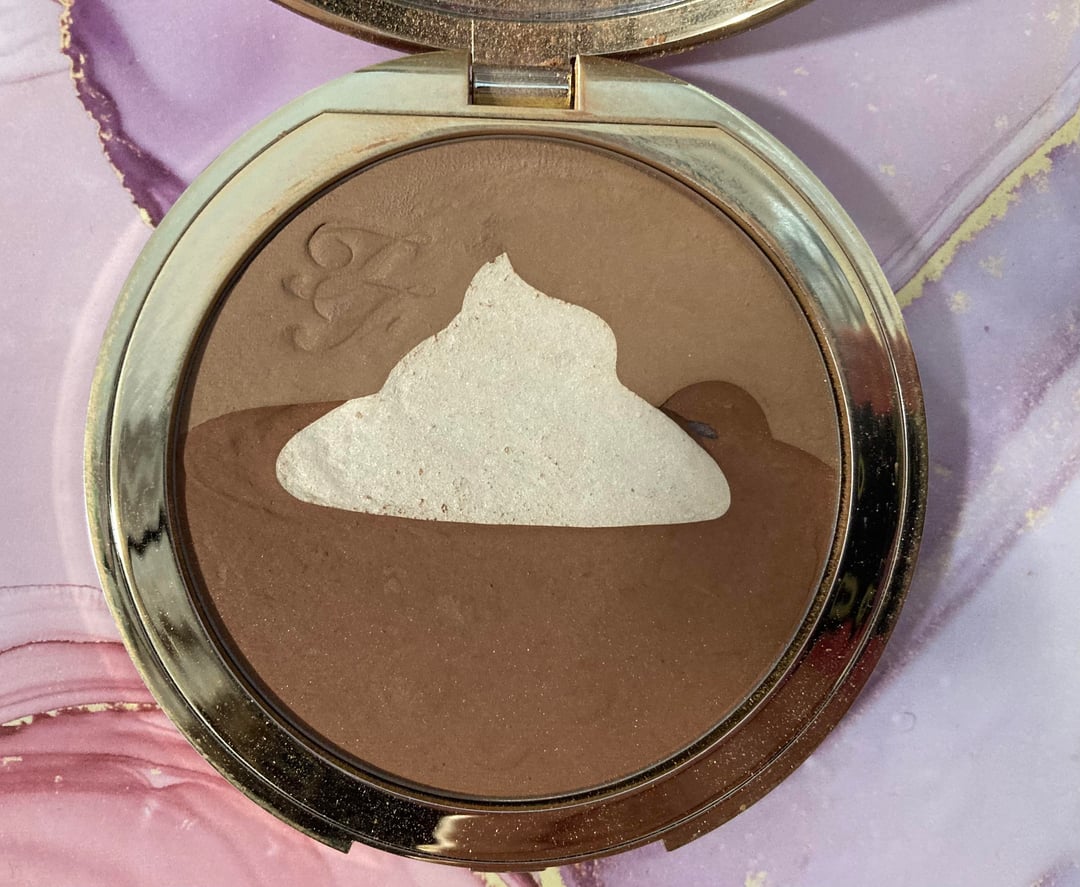I hit a tiny baby pan on this limited bronzer from Too Faced. I got it in December 2022 and I started using it frequently since this April. It took me a long time to hit this baby pan, I think it will take me probably 2 years to completely use it up. The formula is not too powdery, pigmented and last long. I bought it mainly for the packaging.