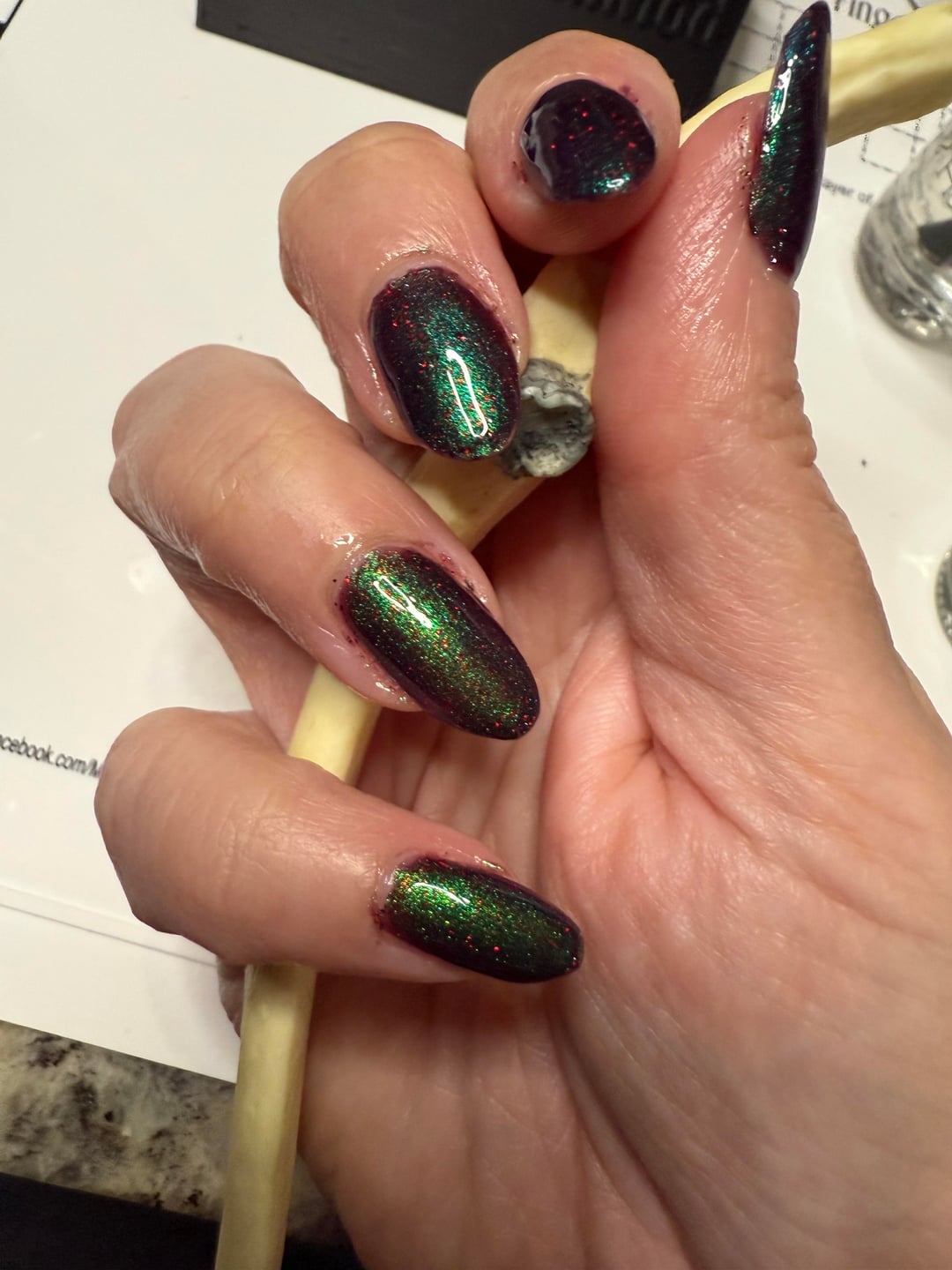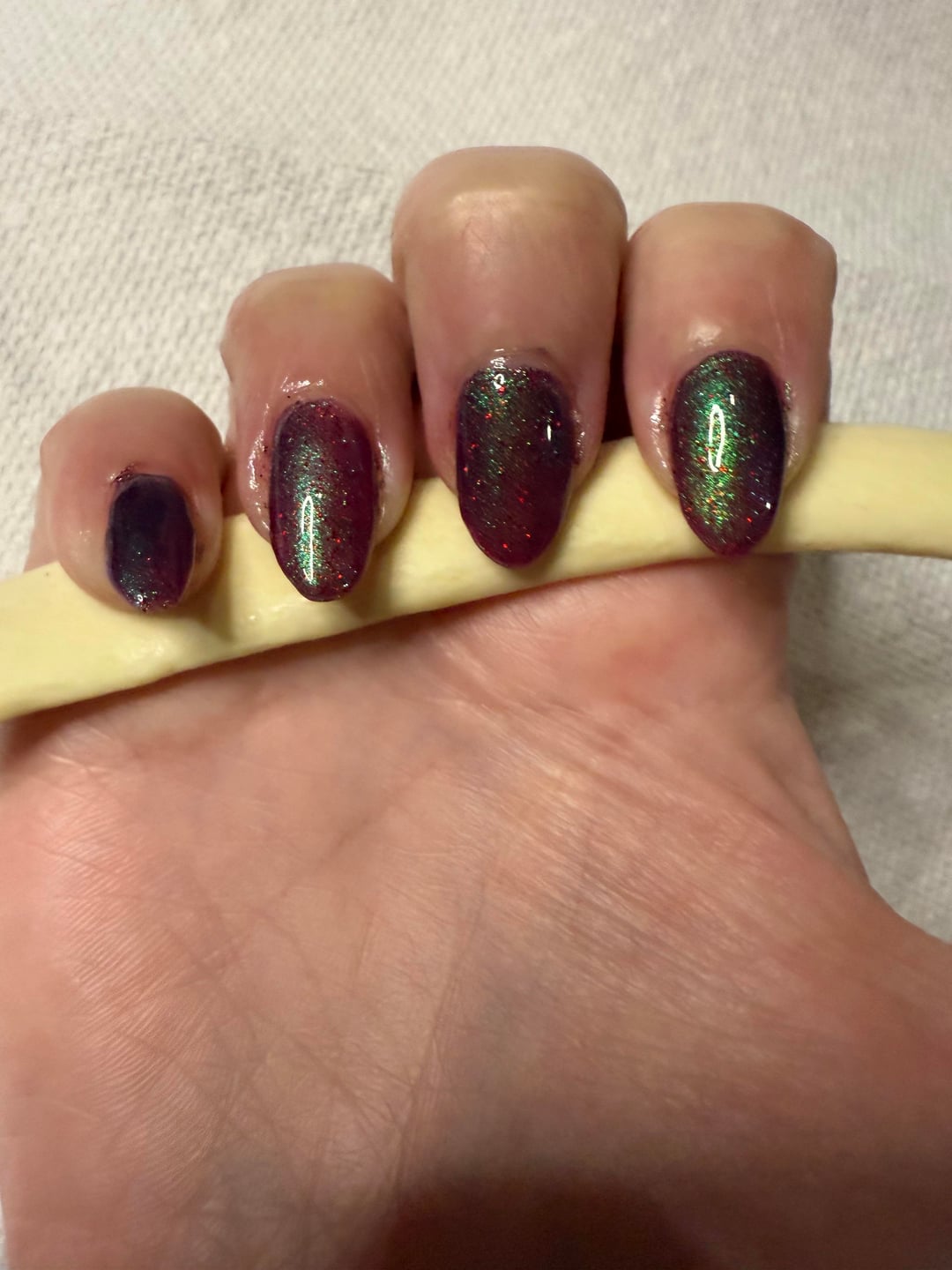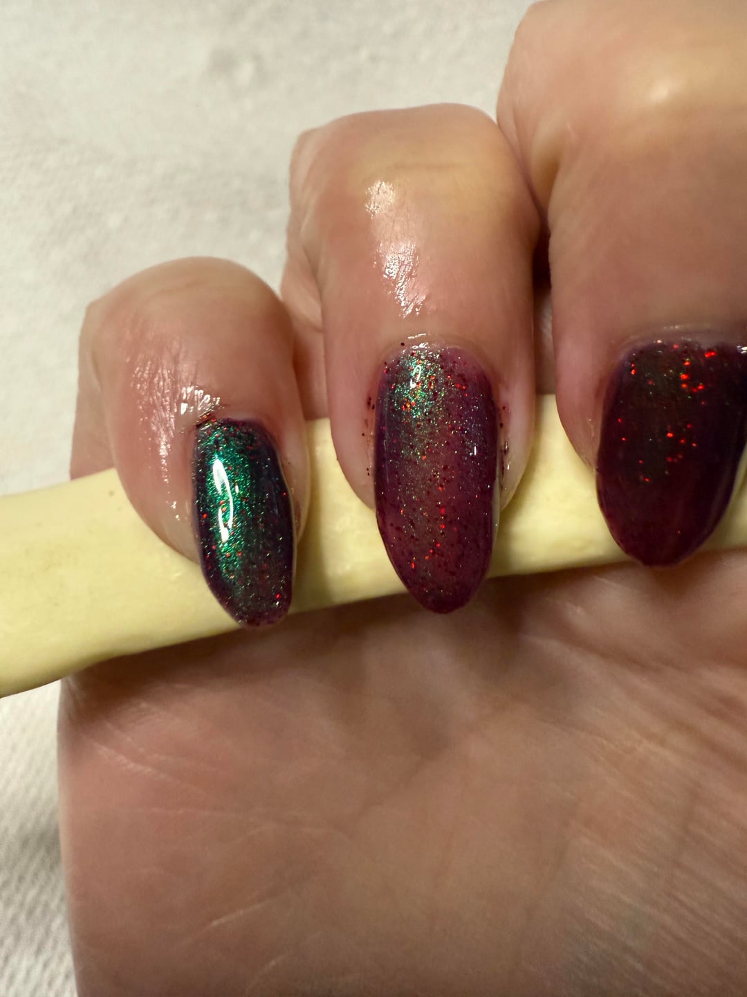 Hanging doesn’t transition as vividly since it’s from January 2024 and I bought it used but it’s clinging to life. I still like the cold state’s subtle pink glitter.