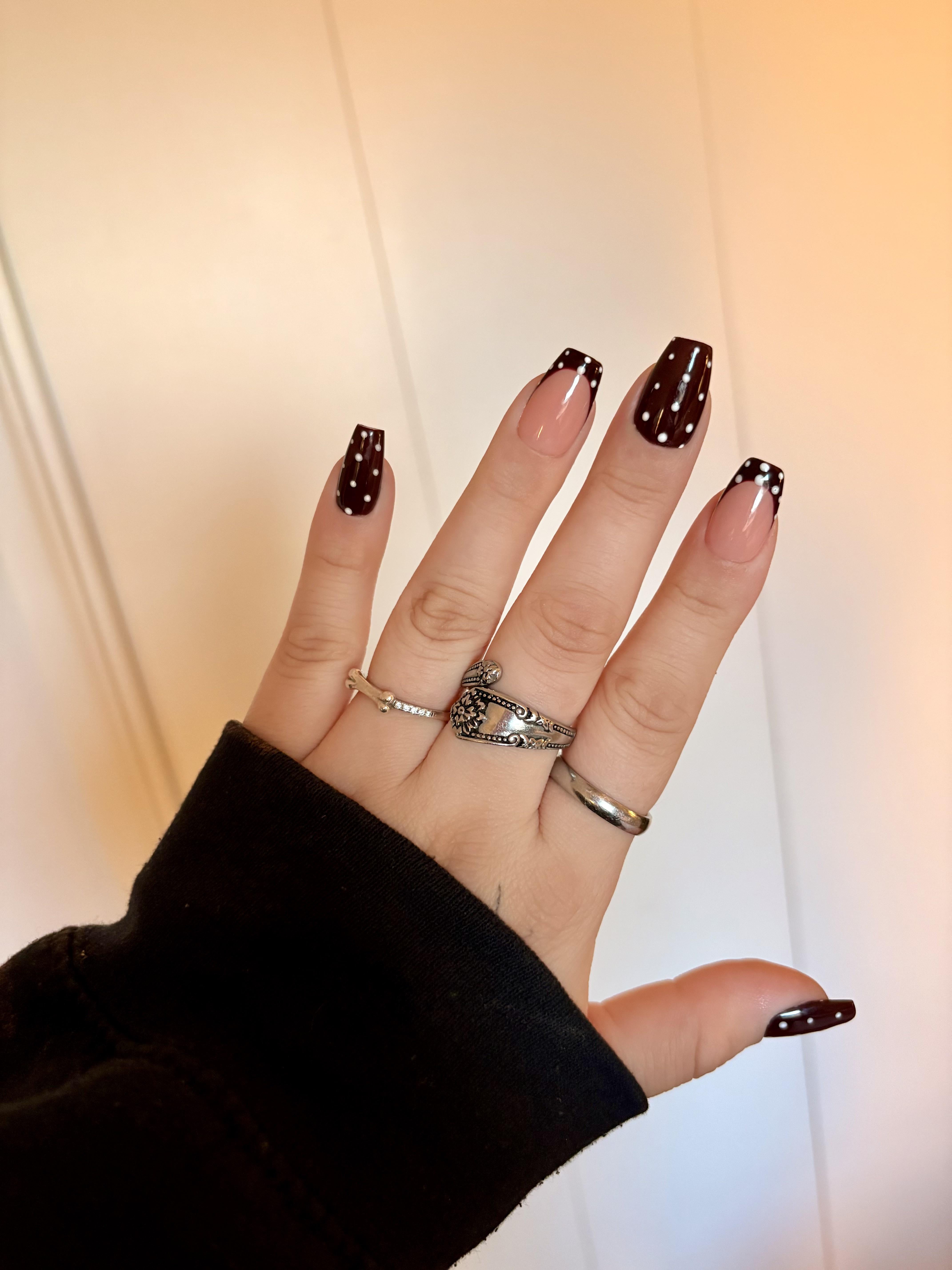 Polka dots & fall colors have me in a chokehold. 🍂 Also usually only do a medium almond, but decided to try short coffin and love them. 🙂↕️ by Nkxo_