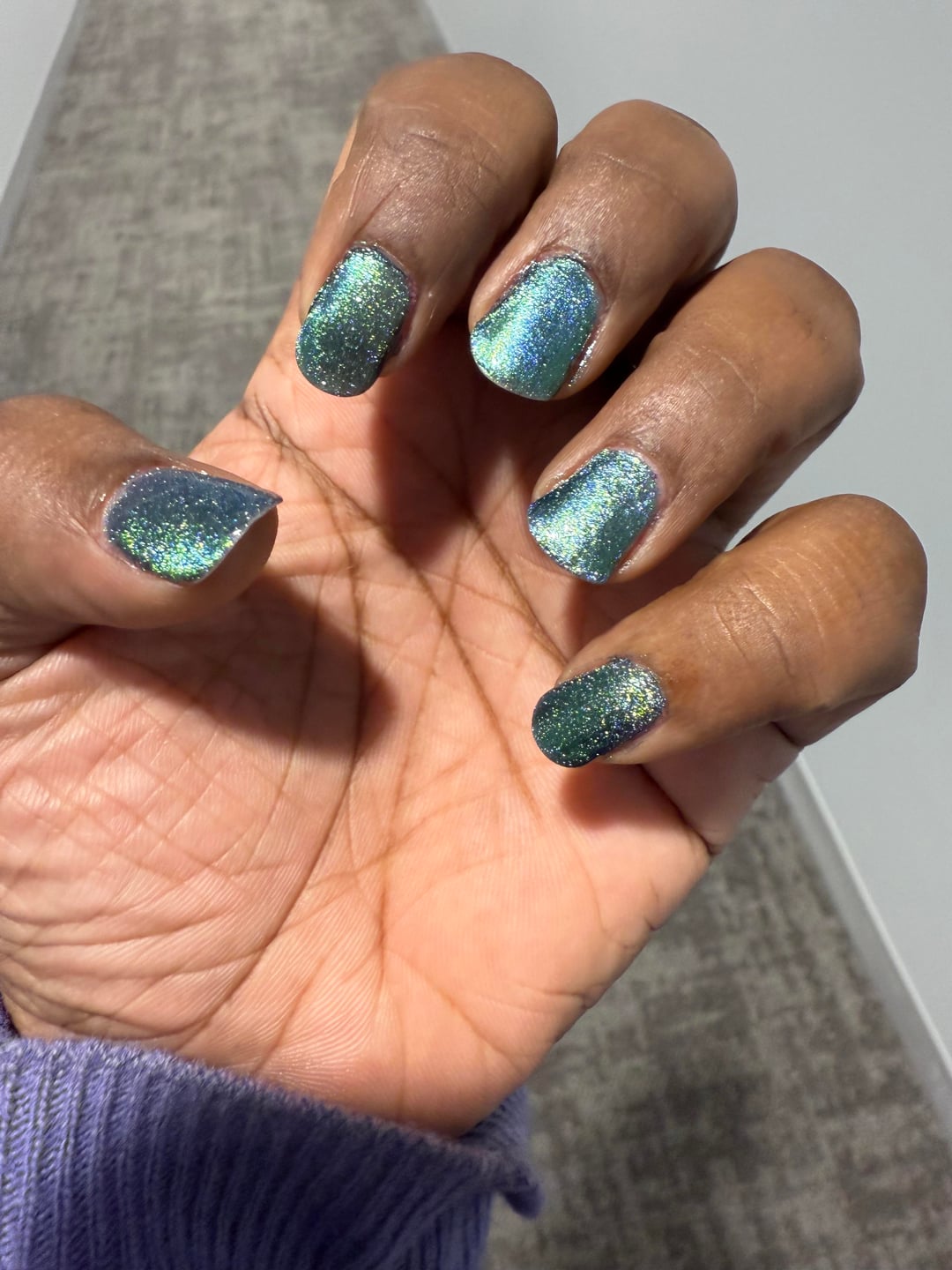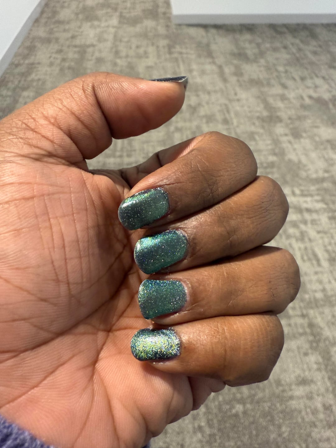 Obsessed with this mosaic magnetic shade from BKL. It’s so pretty! Almost didn’t grab it but so glad I did. Attempt at velvet effect. Nailtiques formula 2 x2, Beesknees lacquer Zoeystery x3,kb shimmer quick dry topcoat. by madison188