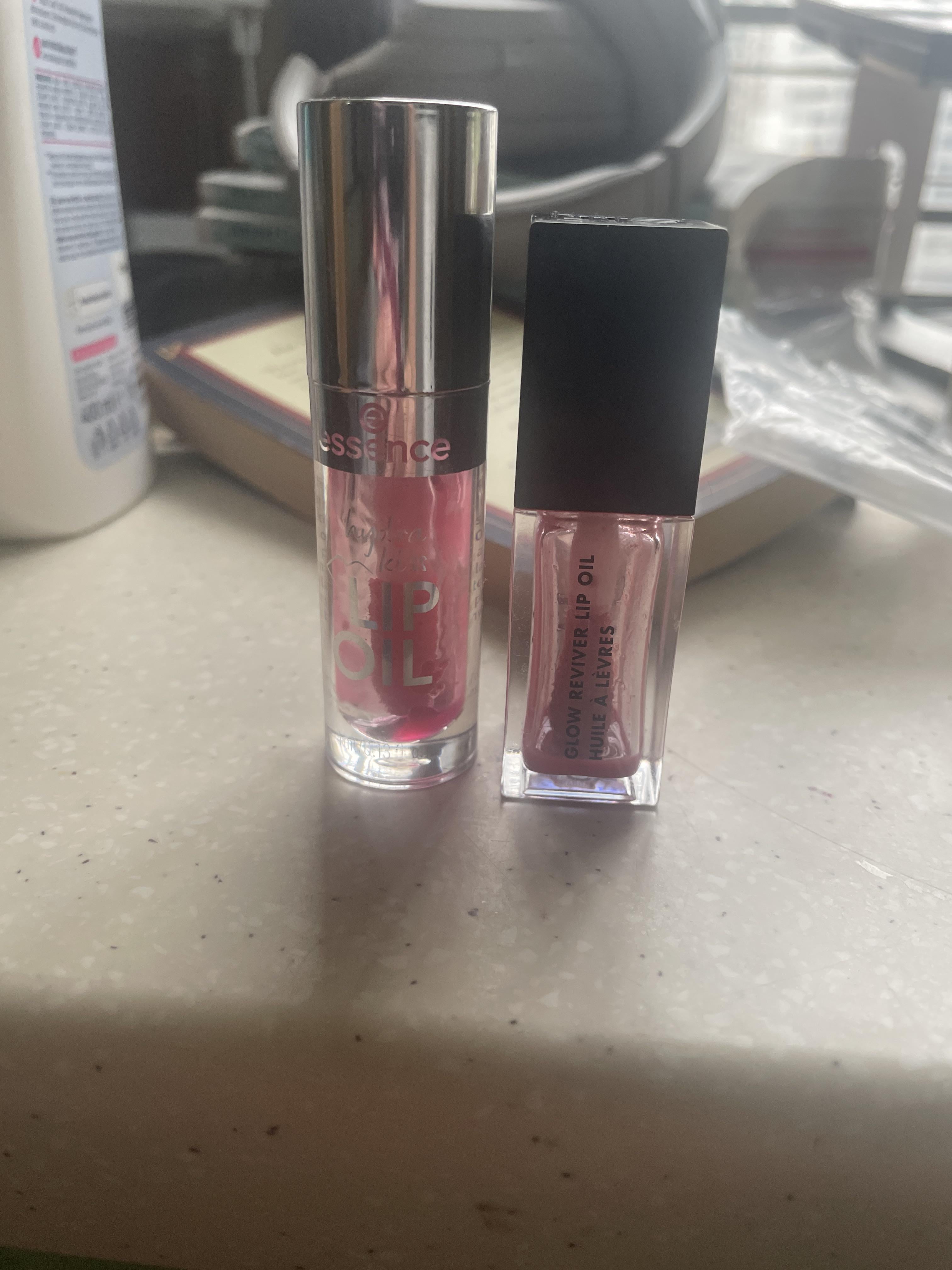 its the elf lip oil in rose envy and the essence lip oil in pink champagne