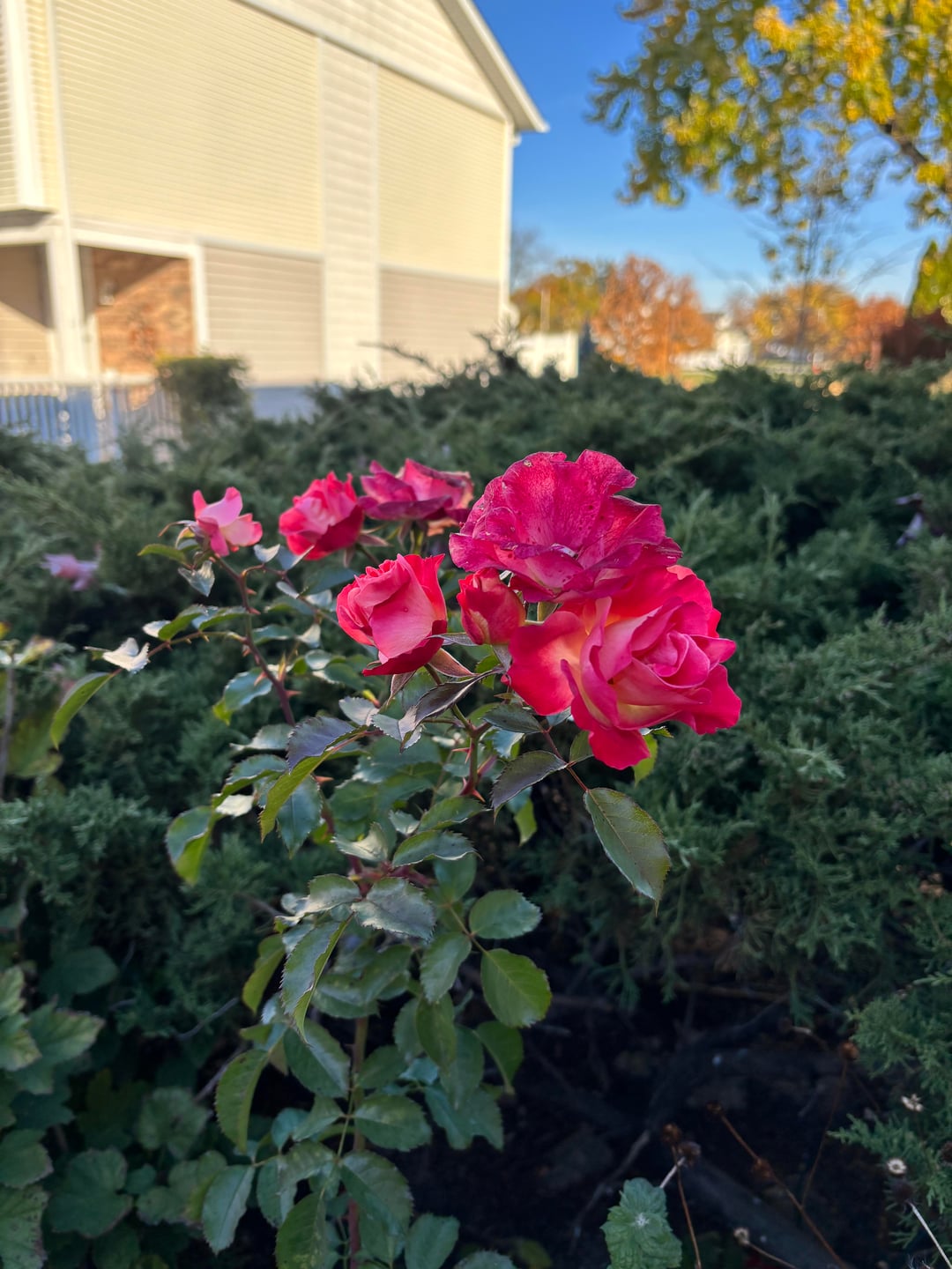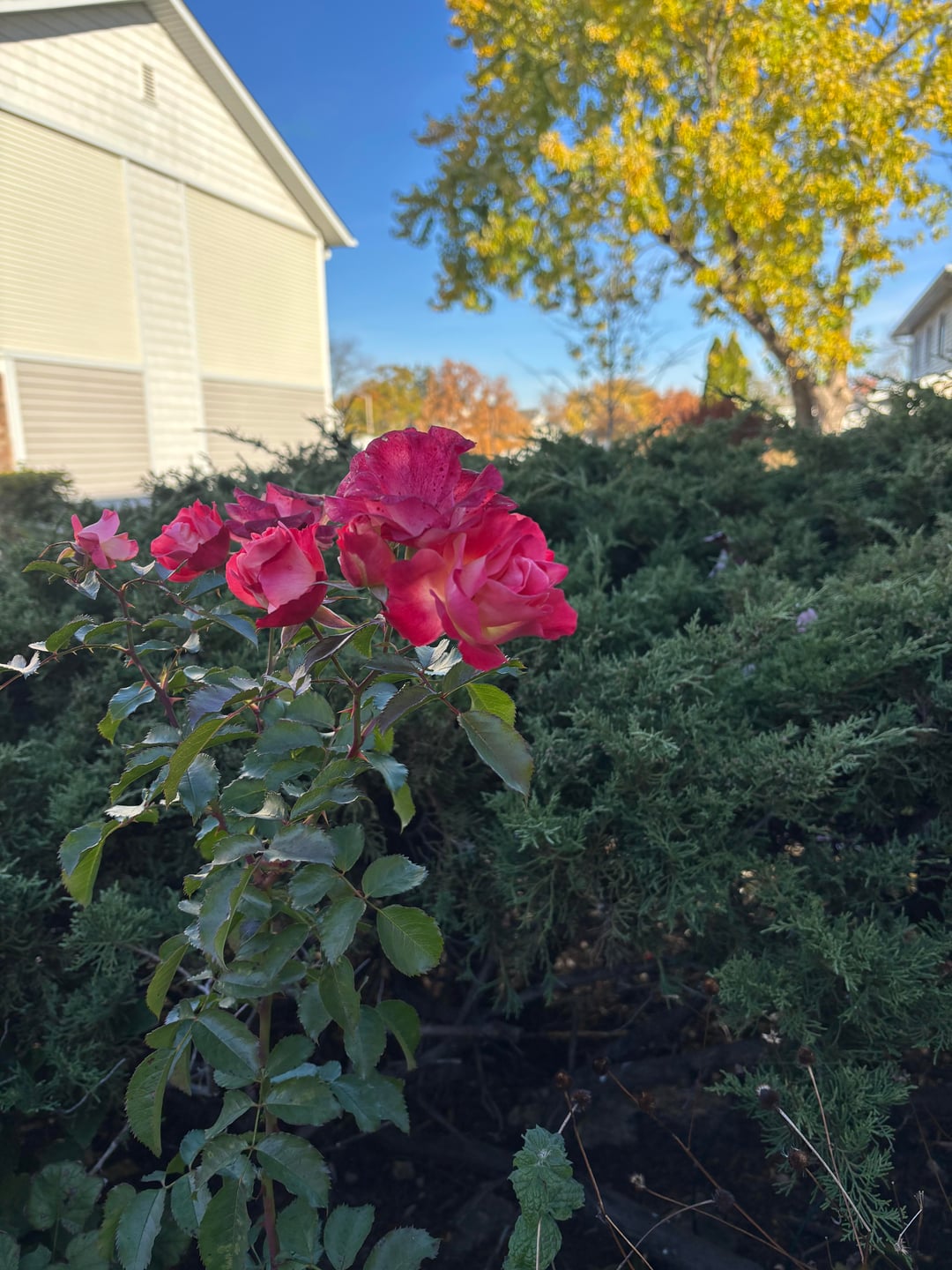 It’s November already (Midwest) and one of my rose bushes pushed out one final bloom. Anyone have any shade recommendations to match her, I want to celebrate her. by Accomplished_Hyena_6