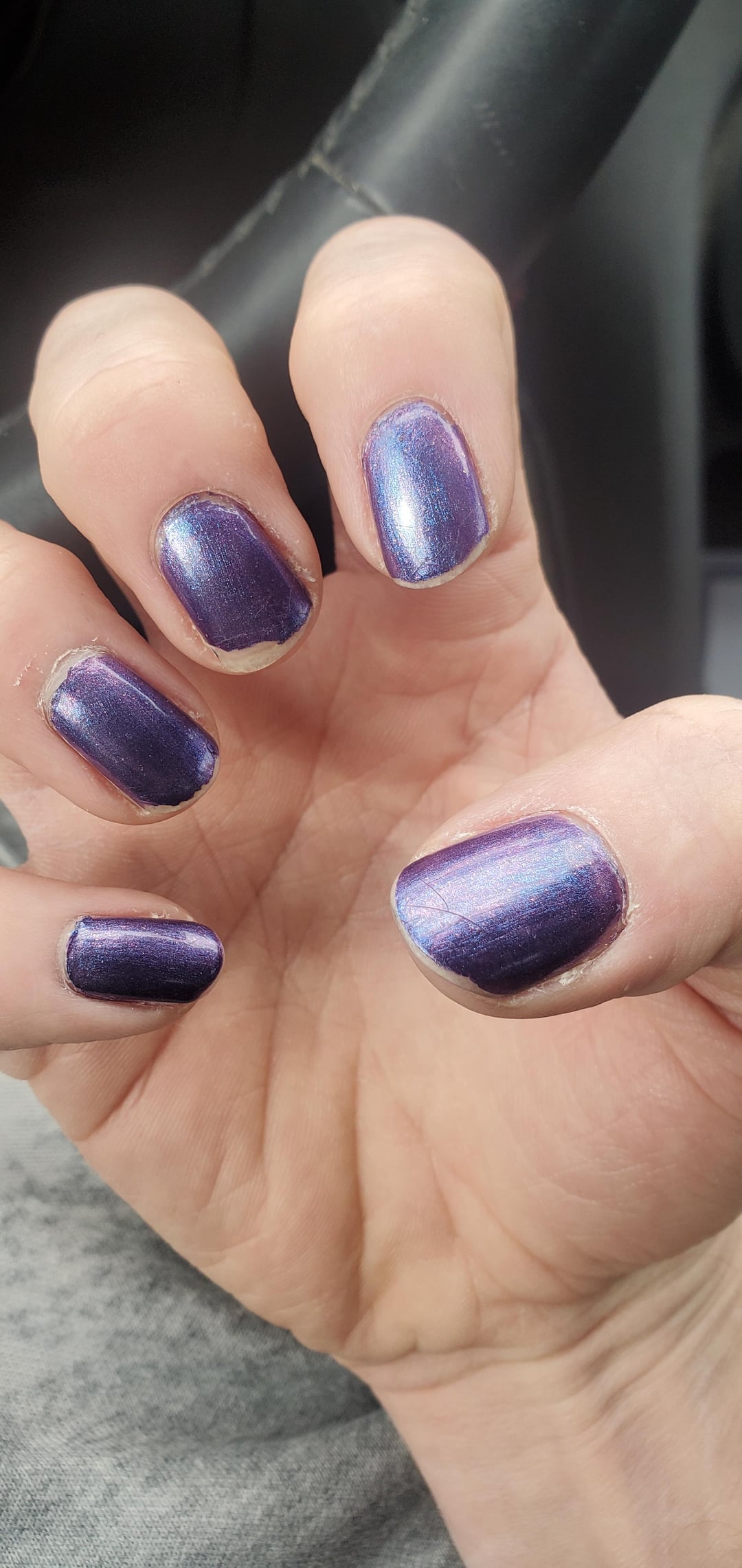 coreynj on November 6, 2025 5:02 pm I used Sally Hansen’s miracle gel primer, miracle gel in Hypnautical, miracle gel top coat in Pixie Chrome, and then their quick dri top coat.