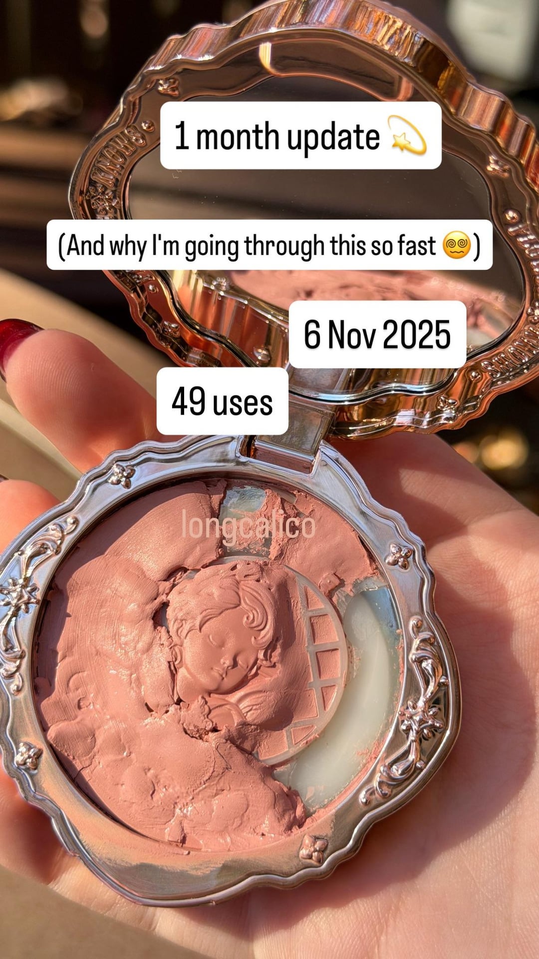 I've repurchased this in shade 03 (the very used one is shade 04). Hopefully, this one lasts a little bit longer now that I know a puff is best for this product!