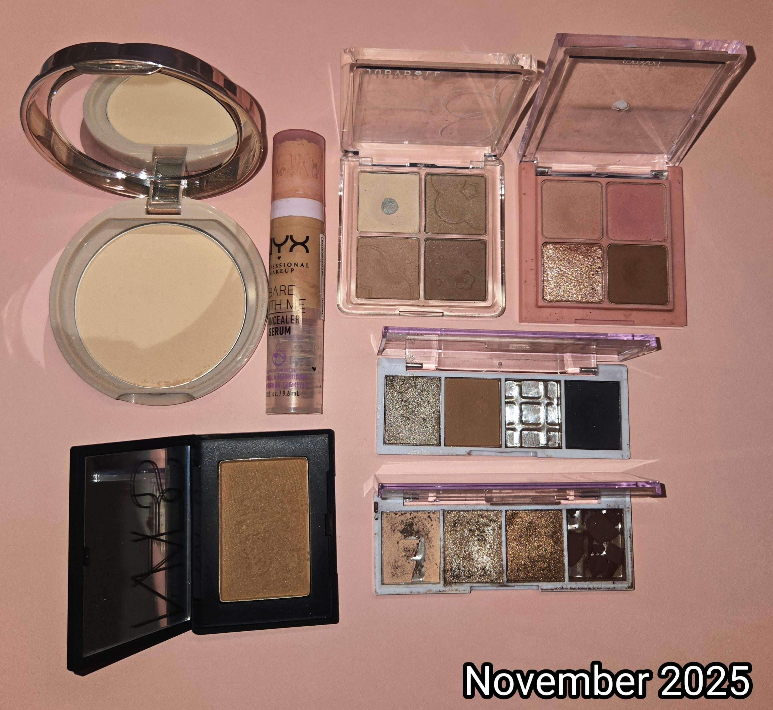 These are my current set daily use makeup. I really love mini eyeshadow palettes lmao which is funny because during the 2010’s, I was into the massive 30+ eyeshadow palettes. I love pretty much all of these products, but I rarely reach for the Elf palettes anymore, and I’m too lazy to repress them.