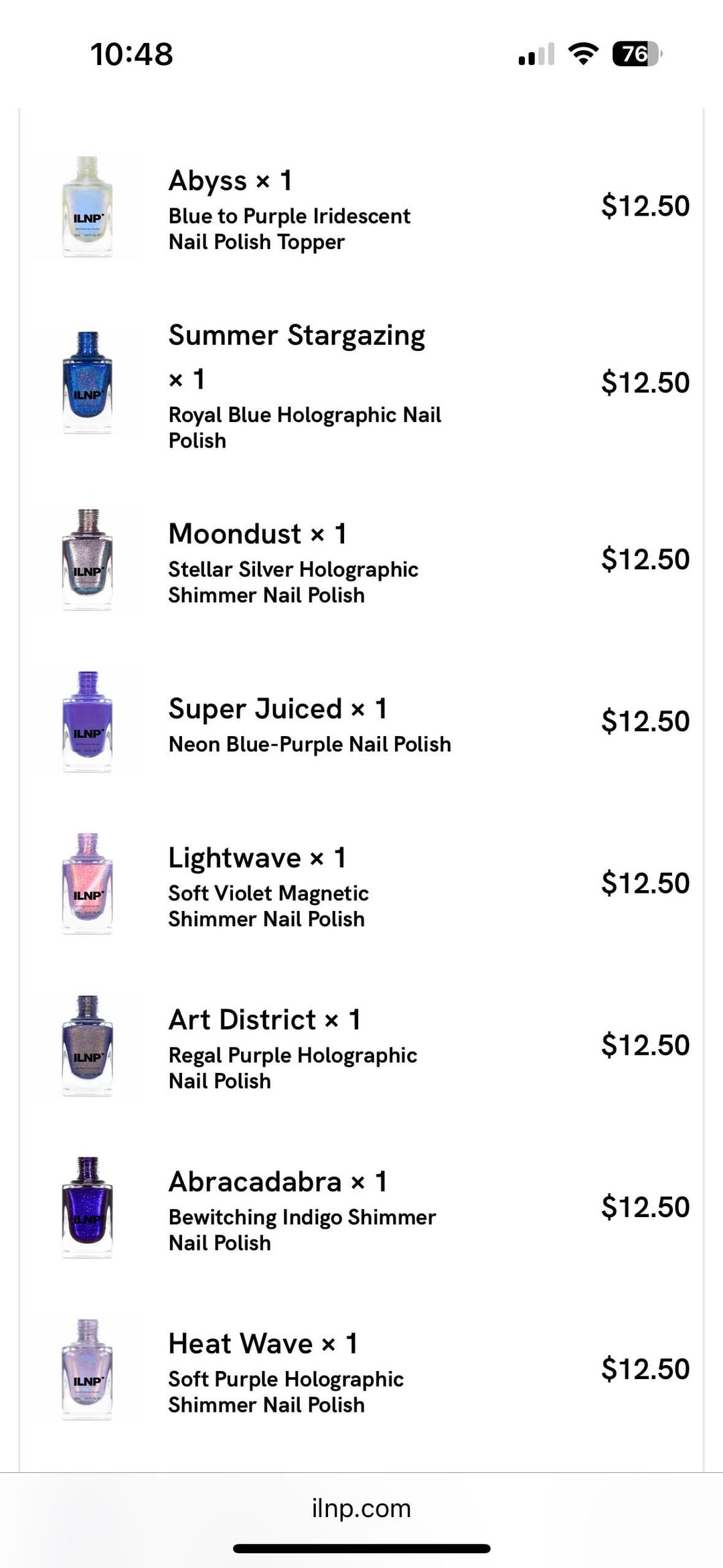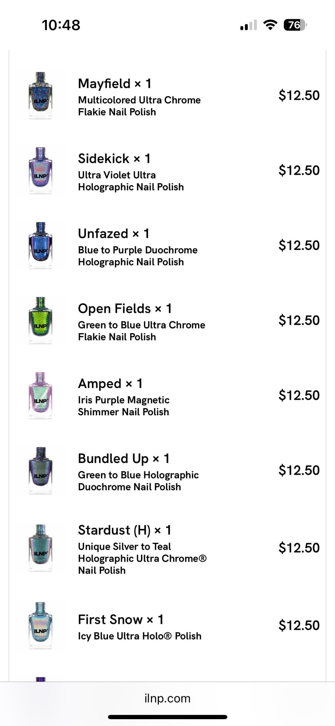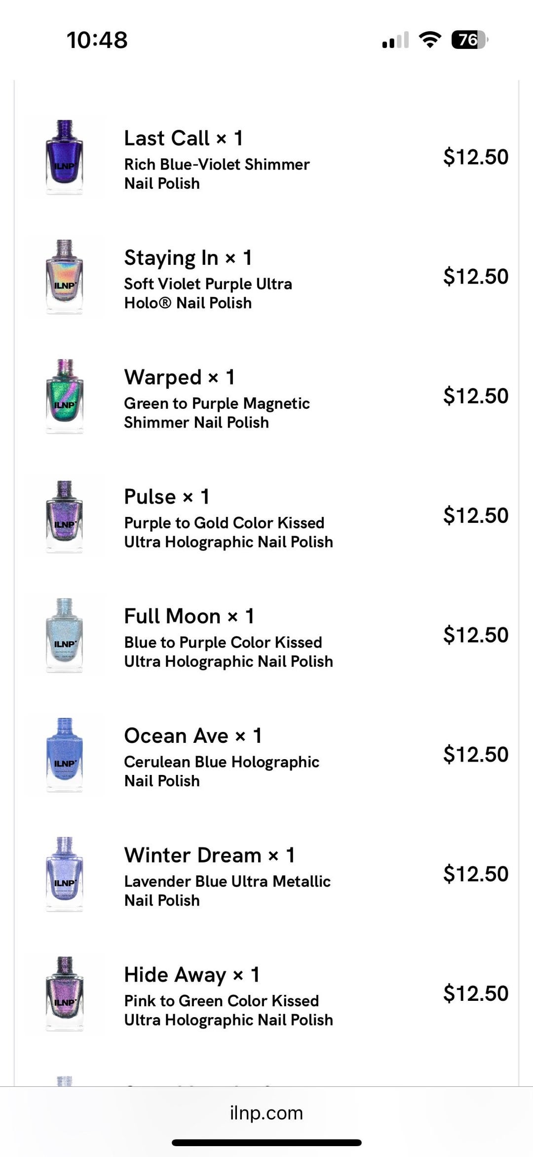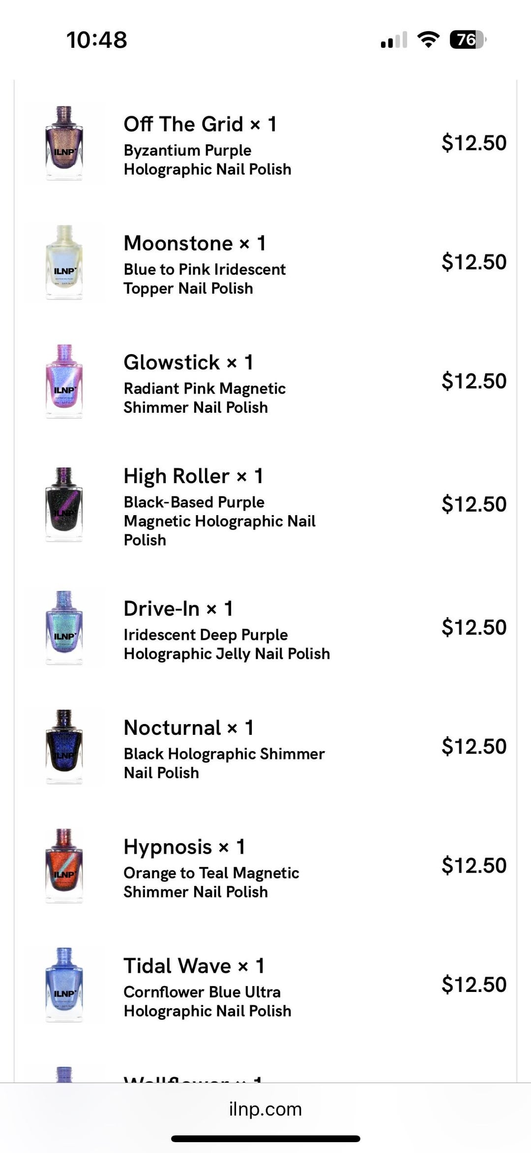 Hi Score and Super Juiced were a little disappointing to me because I expected them to be brighter so make sure you Google photos of those or go to Lacquergram. I love Starlight… def in my top 5 ILNPs. Lured is on my BF list too.