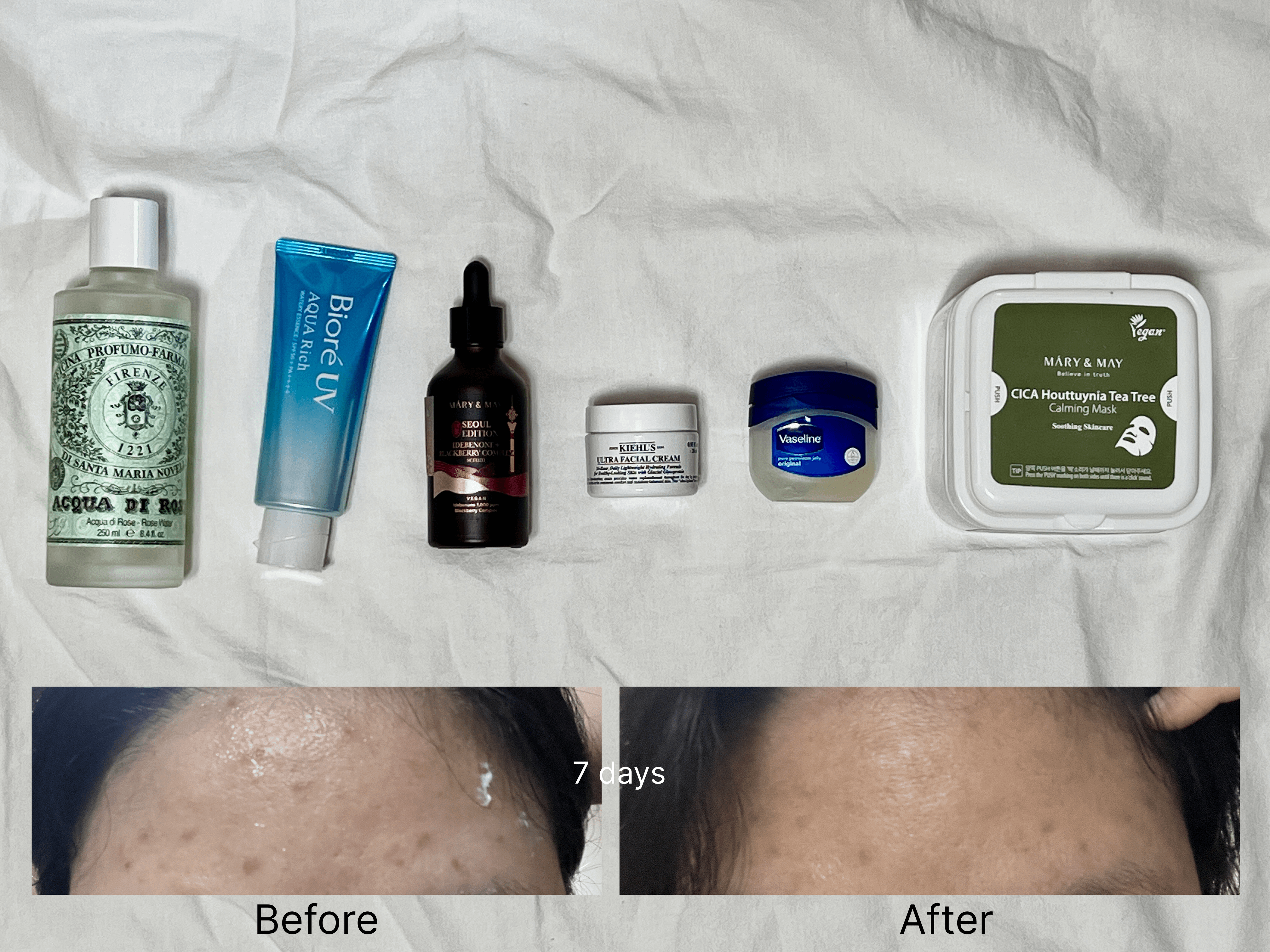 Night care: Once my skin started to recover, I began using the Kiehl’s moisturizing cream at night. After my excercise, I skip the cream and use the mary&may mask pack instead. It’s honestly one of those products I want to use forever.